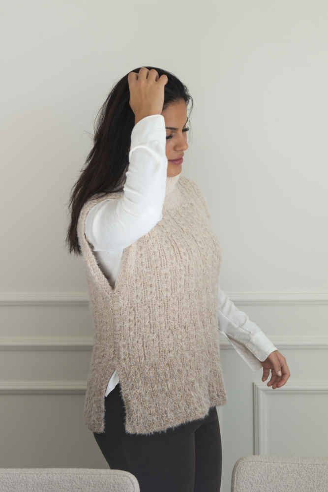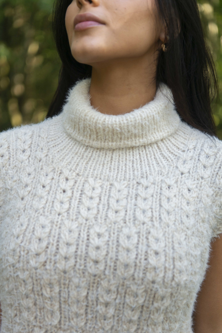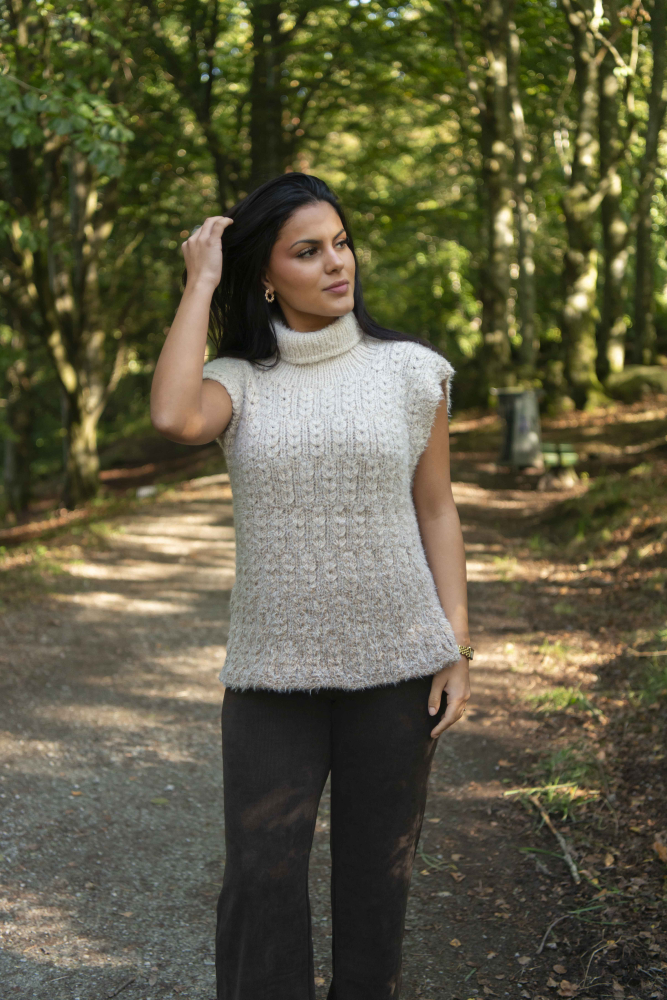 So finden Sie die passende Größe: Messen Sie ein Kleidungsstück aus, das Ihnen gut passt, und vergleichen Sie die Maße mit der Anleitung. Entscheiden Sie sich basierend auf der Brustweite des Rumpfteils für eine Größe. Die Länge des Rumpfteils sowie der Ärmel kann nach Belieben angepasst werden, aber denken Sie daran, zusätzliches Garn zu bestellen, wenn Sie die Länge verändern möchten!