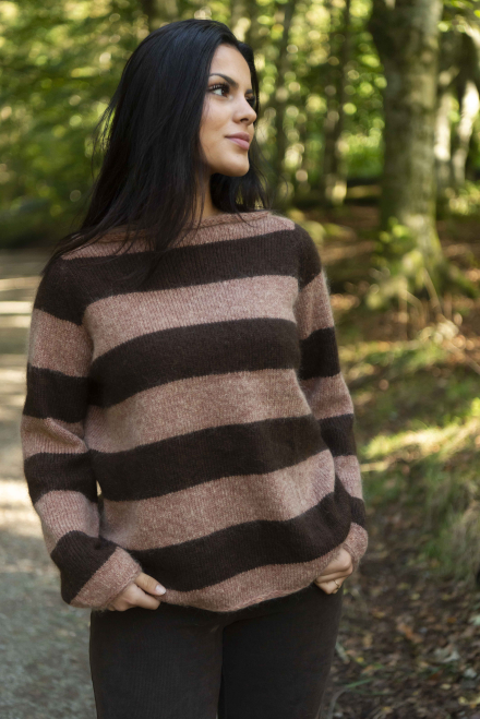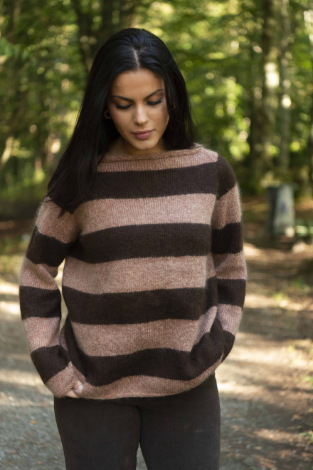 So finden Sie die passende Größe: Messen Sie ein Kleidungsstück aus, das Ihnen gut passt, und vergleichen Sie die Maße mit der Anleitung. Entscheiden Sie sich basierend auf der Brustweite des Rumpfteils für eine Größe. Die Länge des Rumpfteils sowie der Ärmel kann nach Belieben angepasst werden, aber denken Sie daran, zusätzliches Garn zu bestellen, wenn Sie die Länge verändern möchten!