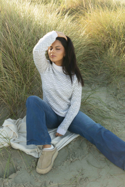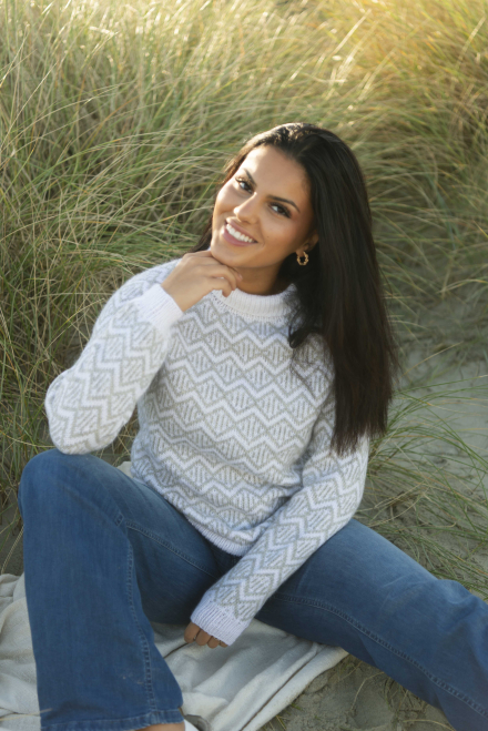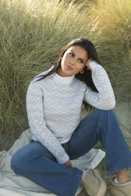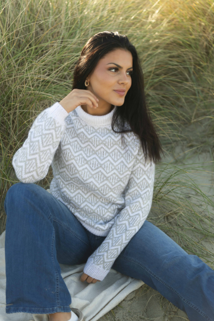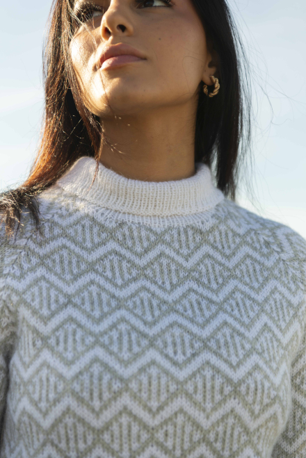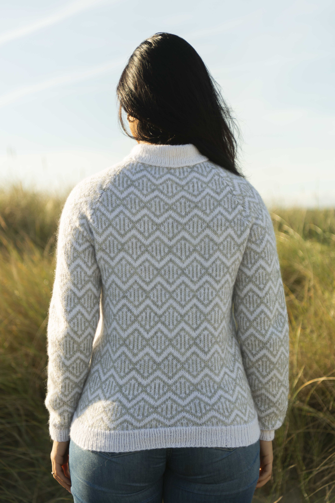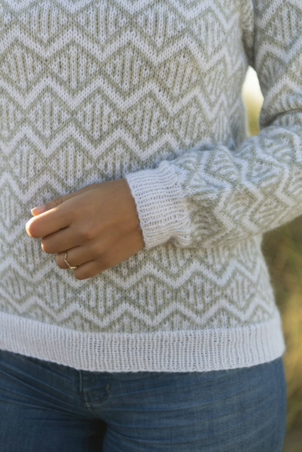 So finden Sie die passende Größe: Messen Sie ein Kleidungsstück aus, das Ihnen gut passt, und vergleichen Sie die Maße mit der Anleitung. Entscheiden Sie sich basierend auf der Brustweite des Rumpfteils für eine Größe. Die Länge des Rumpfteils sowie der Ärmel kann nach Belieben angepasst werden, aber denken Sie daran, zusätzliches Garn zu bestellen, wenn Sie die Länge verändern möchten!