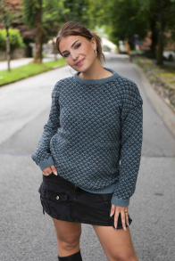 So finden Sie die passende Größe: Messen Sie ein Kleidungsstück aus, das Ihnen gut passt, und vergleichen Sie die Maße mit der Anleitung. Entscheiden Sie sich basierend auf der Brustweite des Rumpfteils für eine Größe. Die Länge des Rumpfteils sowie der Ärmel kann nach Belieben angepasst werden, aber denken Sie daran, zusätzliches Garn zu bestellen, wenn Sie die Länge verändern möchten!