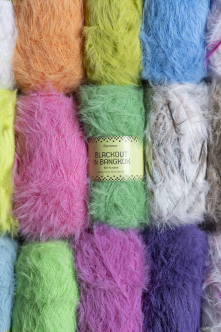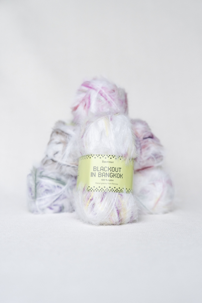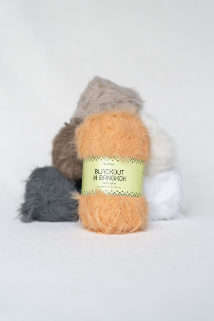 BÆSTMOR - Blackout in Bangkok ist ein Garn aus 100 % Nylon mit einem fantastisch weichen Touch. Es handelt sich um ein luftiges Fellgarn mit optimalem Strickgefühl, bei dem die Maschen leicht über die Nadeln gleiten.