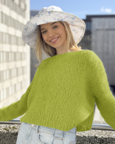Tipp: Durch den leichten und luftigen Faden werden Kleidungsstücke, die mit doppeltem Garn gestrickt sind, sowohl flauschig als auch dicht. Sie können das Kleidungsstück zudem mit einer weichen Naturbürste aufrauen, um einen pelzartigen Look zu erzielen.