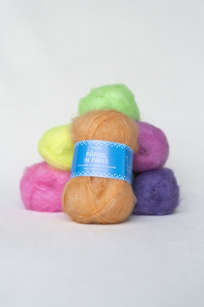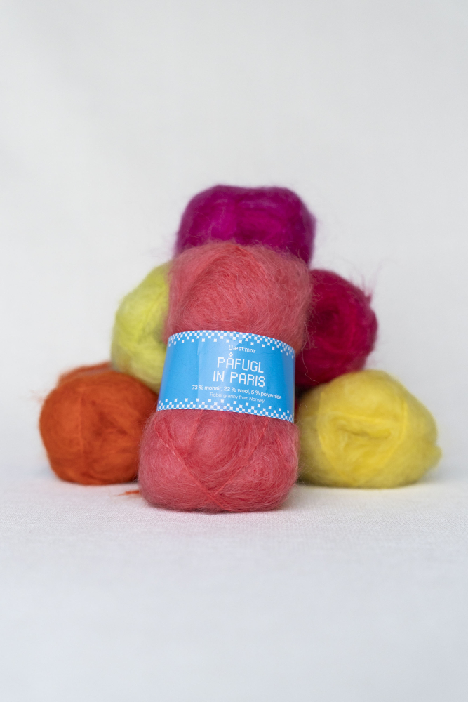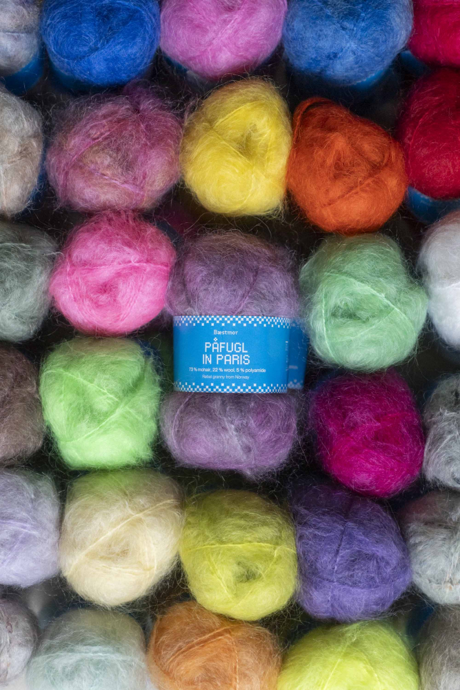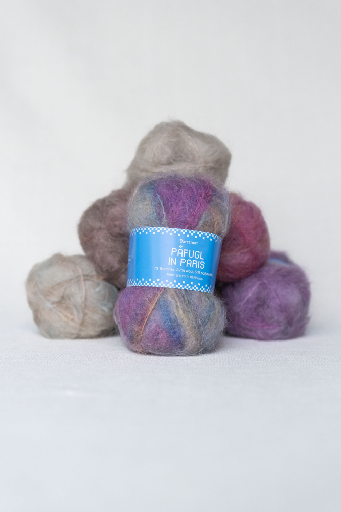 Bæstmor - Påfugl in Paris ist ein exklusives, weiches, langfaseriges, gebürstetes Mohairgarn. Es verleiht den Kleidungsstücken ein superleichtes und luftiges Gefühl, ist elastisch und behält seine Form.