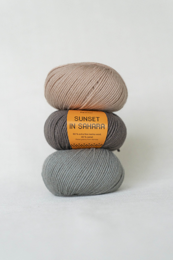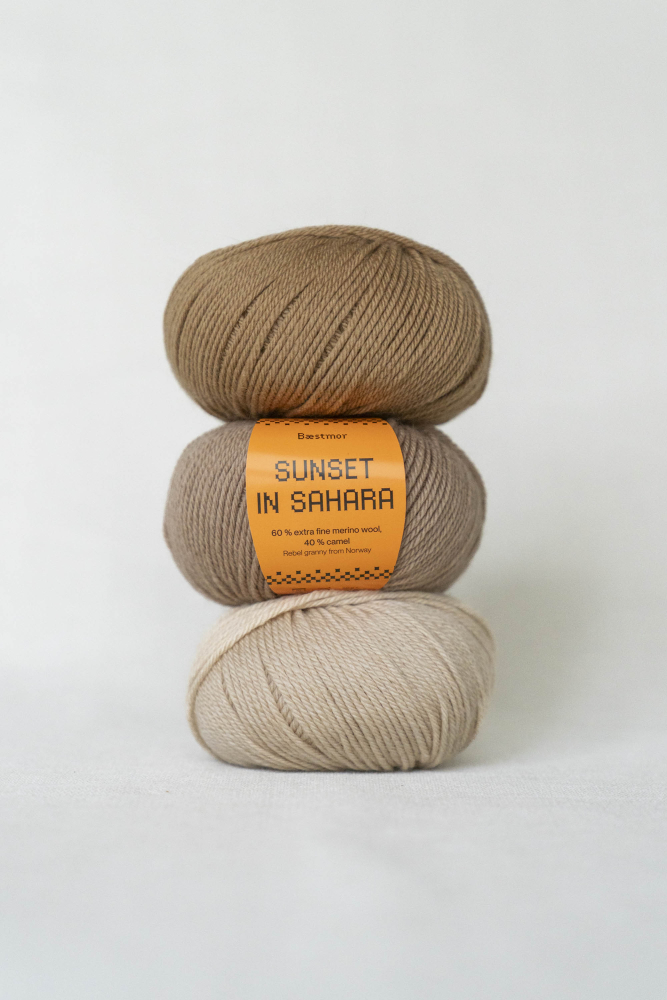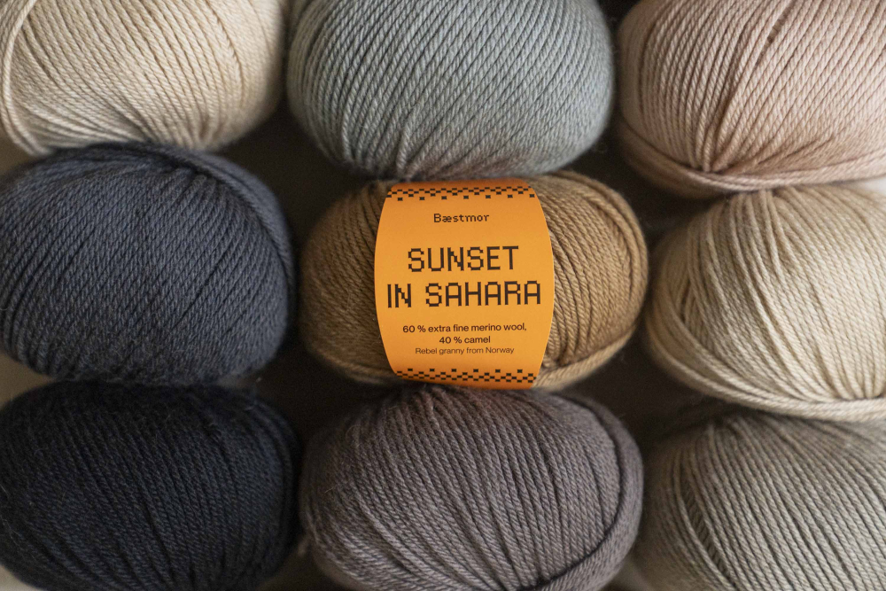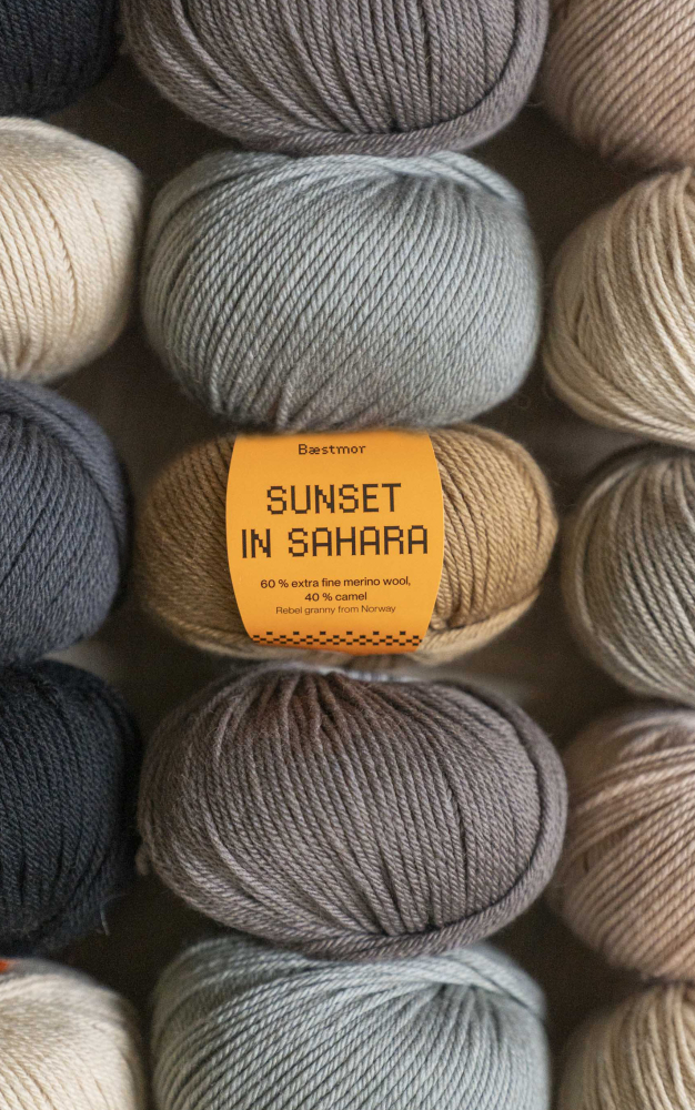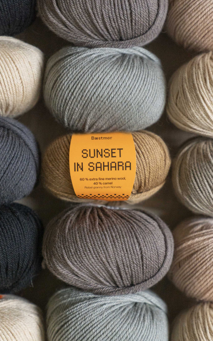 BÆSTMOR - SUNSET IN SAHARA ist ein herrliches Luxusgarn aus 60 % extrafeiner Merinowolle und 40 % Kamel.