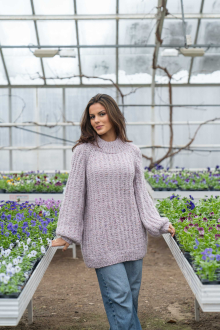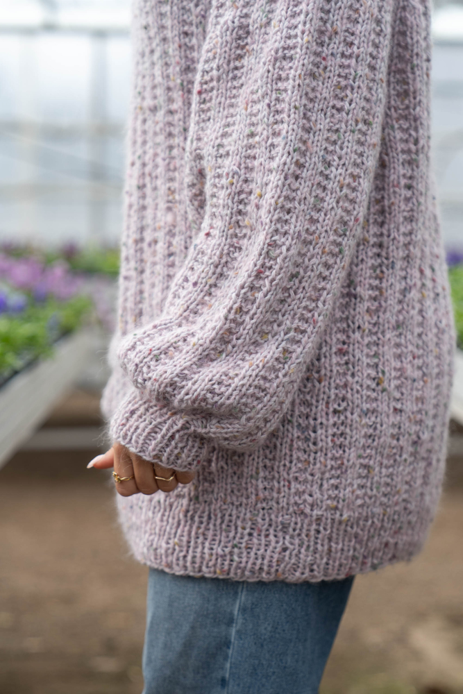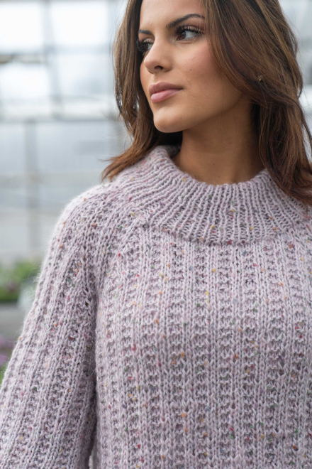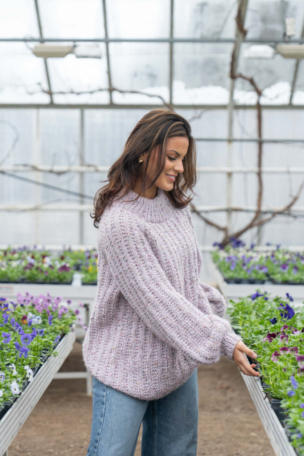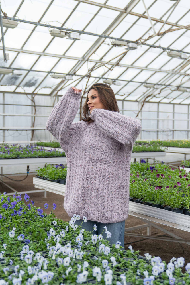 So finden Sie die passende Größe: Messen Sie ein Kleidungsstück aus, das Ihnen gut passt, und vergleichen Sie die Maße mit der Anleitung. Entscheiden Sie sich basierend auf der Brustweite des Rumpfteils für eine Größe. Die Länge des Rumpfteils sowie der Ärmel kann nach Belieben angepasst werden, aber denken Sie daran, zusätzliches Garn zu bestellen, wenn Sie die Länge verändern möchten!