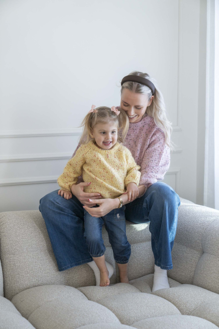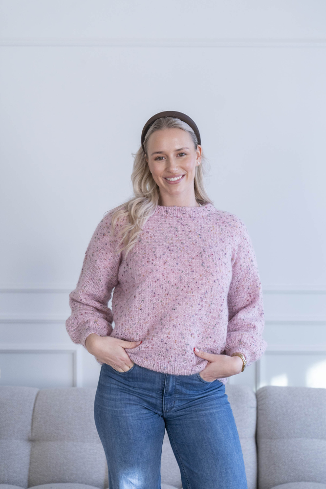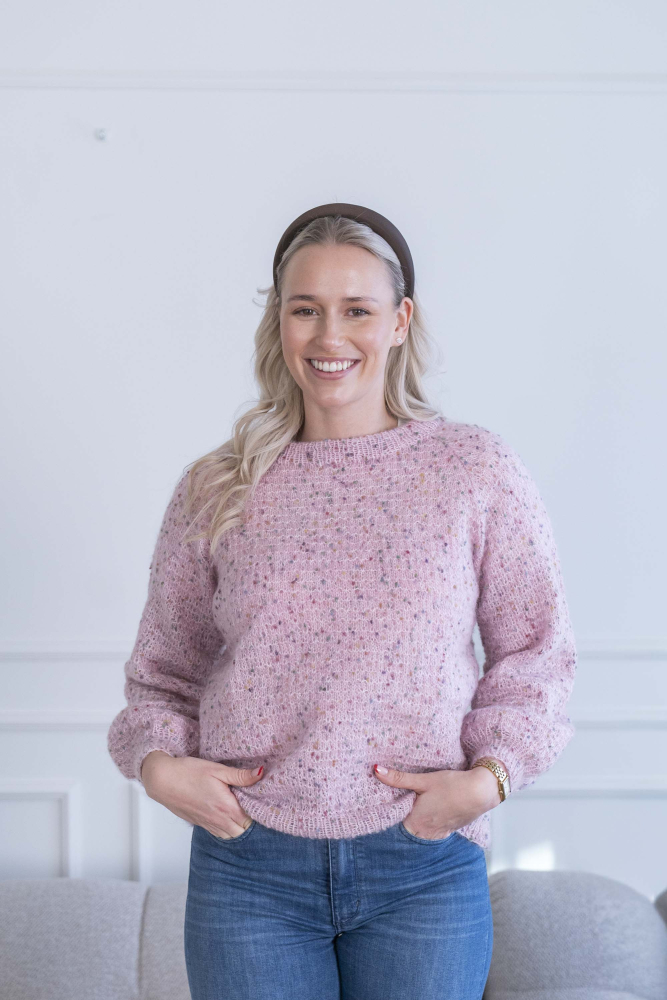 So finden Sie die passende Größe: Messen Sie ein Kleidungsstück aus, das Ihnen gut passt, und vergleichen Sie die Maße mit der Anleitung. Entscheiden Sie sich basierend auf der Brustweite des Rumpfteils für eine Größe. Die Länge des Rumpfteils sowie der Ärmel kann nach Belieben angepasst werden, aber denken Sie daran, zusätzliches Garn zu bestellen, wenn Sie die Länge verändern möchten!