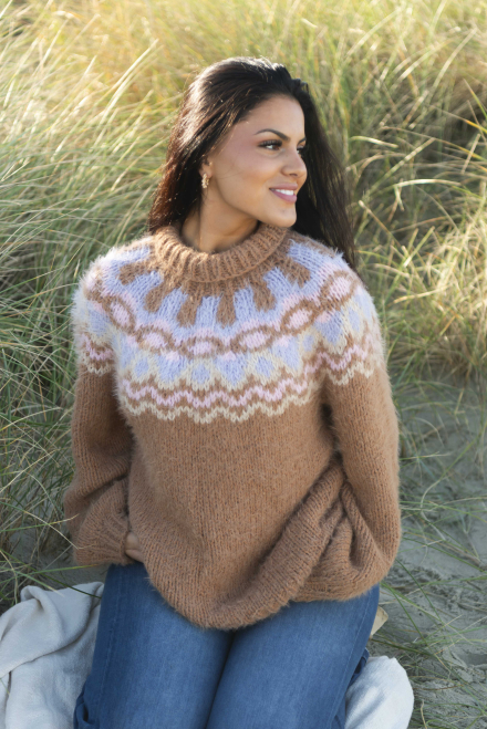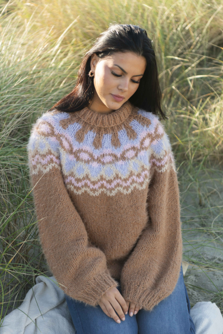 So finden Sie die passende Größe: Messen Sie ein Kleidungsstück aus, das Ihnen gut passt, und vergleichen Sie die Maße mit der Anleitung. Entscheiden Sie sich basierend auf der Brustweite des Rumpfteils für eine Größe. Die Länge des Rumpfteils sowie der Ärmel kann nach Belieben angepasst werden, aber denken Sie daran, zusätzliches Garn zu bestellen, wenn Sie die Länge verändern möchten!
