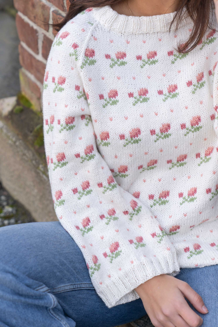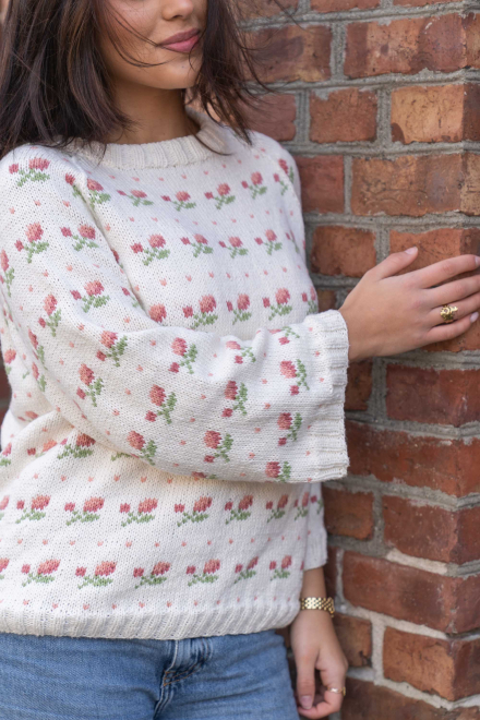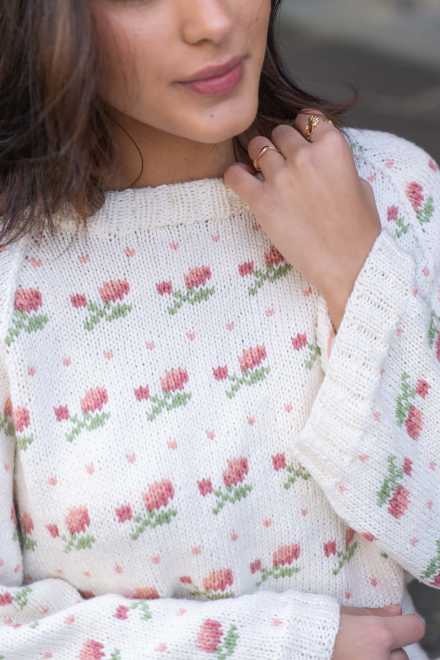 So finden Sie die passende Größe: Messen Sie ein Kleidungsstück aus, das Ihnen gut passt, und vergleichen Sie die Maße mit der Anleitung. Entscheiden Sie sich basierend auf der Brustweite des Rumpfteils für eine Größe. Die Länge des Rumpfteils sowie der Ärmel kann nach Belieben angepasst werden, aber denken Sie daran, zusätzliches Garn zu bestellen, wenn Sie die Länge verändern möchten!