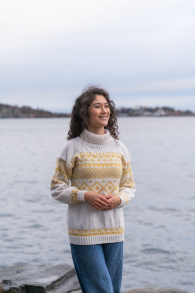 So finden Sie die passende Größe: Messen Sie ein Kleidungsstück aus, das Ihnen gut passt, und vergleichen Sie die Maße mit der Anleitung. Entscheiden Sie sich basierend auf der Brustweite des Vorderteils für eine Größe. Die Länge des Vorderteils sowie der Ärmel kann nach Belieben angepasst werden, aber denken Sie daran, zusätzliches Garn zu bestellen, wenn Sie die Länge verändern möchten!
