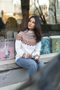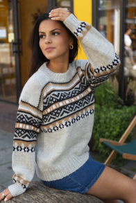 So finden Sie die passende Größe: Messen Sie ein Kleidungsstück aus, das Ihnen gut passt, und vergleichen Sie die Maße mit der Anleitung. Entscheiden Sie sich basierend auf der Brustweite des Rumpfteils für eine Größe. Die Länge des Rumpfteils sowie der Ärmel kann nach Belieben angepasst werden, aber denken Sie daran, zusätzliches Garn zu bestellen, wenn Sie die Länge verändern möchten!