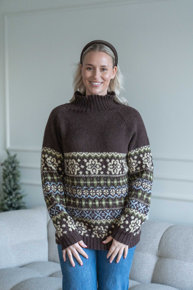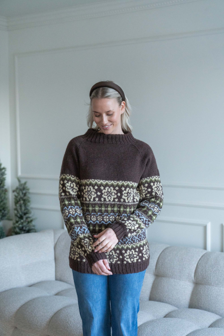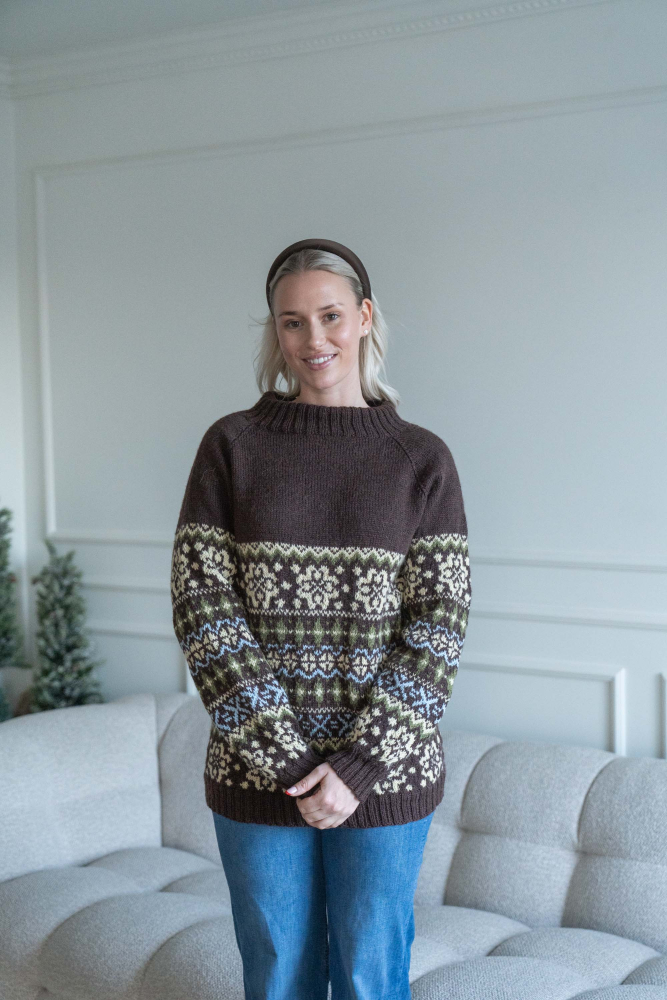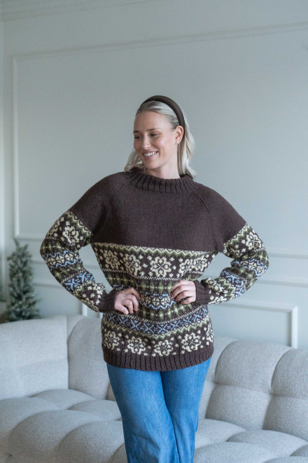So finden Sie die passende Größe: Messen Sie ein Kleidungsstück aus, das Ihnen gut passt, und vergleichen Sie die Maße mit der Anleitung. Entscheiden Sie sich basierend auf der Brustweite des Rumpfteils für eine Größe. Die Länge des Rumpfteils sowie der Ärmel kann nach Belieben angepasst werden, aber denken Sie daran, zusätzliches Garn zu bestellen, wenn Sie die Länge verändern möchten!