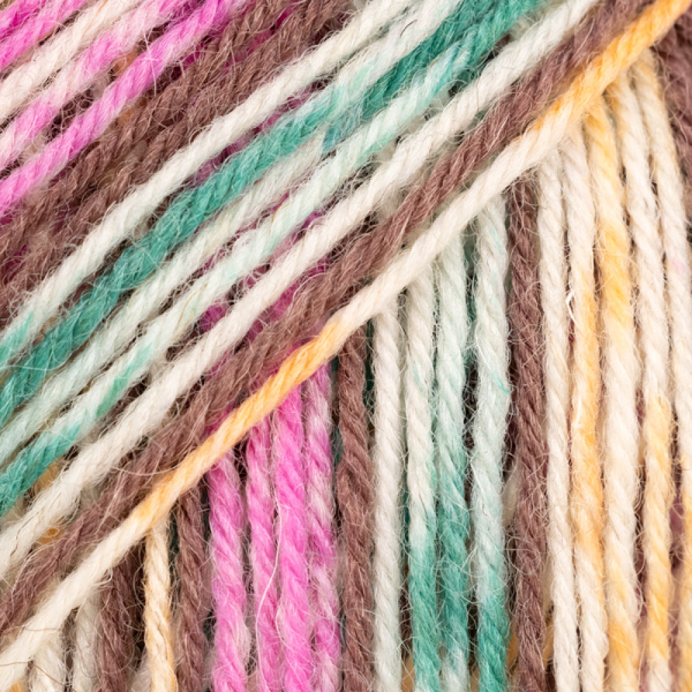 Sowohl print als auch long print werden mit einer Methode namens "Fancy Dyeing" gefärbt. Sie unterscheidet sich von anderen Färbungsmethoden: In jeder Farbpartie gibt es kleine Variationen im Muster und im Farbton. Dies ist kein Fehler, sondern eine Eigenschaft des Garns.