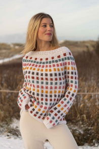 So finden Sie die passende Größe: Messen Sie ein Kleidungsstück aus, das Ihnen gut passt, und vergleichen Sie die Maße mit der Anleitung. Entscheiden Sie sich basierend auf der Brustweite des Vorderteils für eine Größe. Die Länge des Vorderteils sowie der Ärmel kann nach Belieben angepasst werden, aber denken Sie daran, zusätzliches Garn zu bestellen, wenn Sie die Länge verändern möchten!
