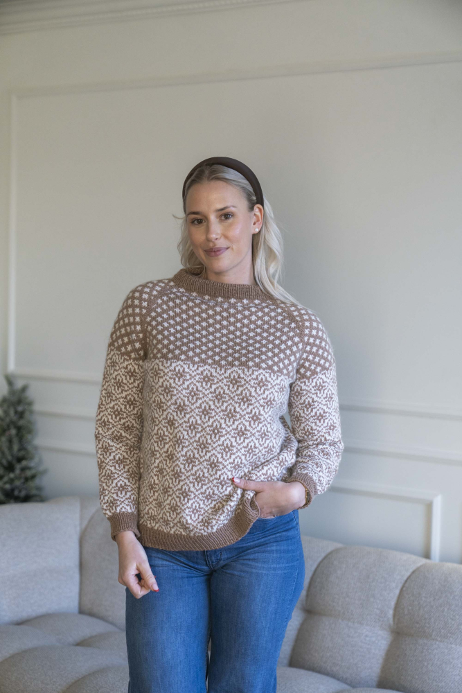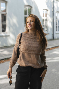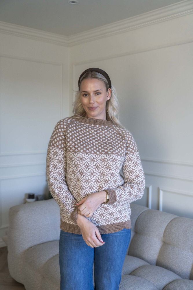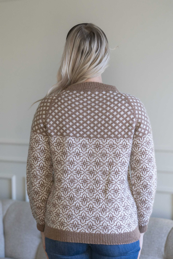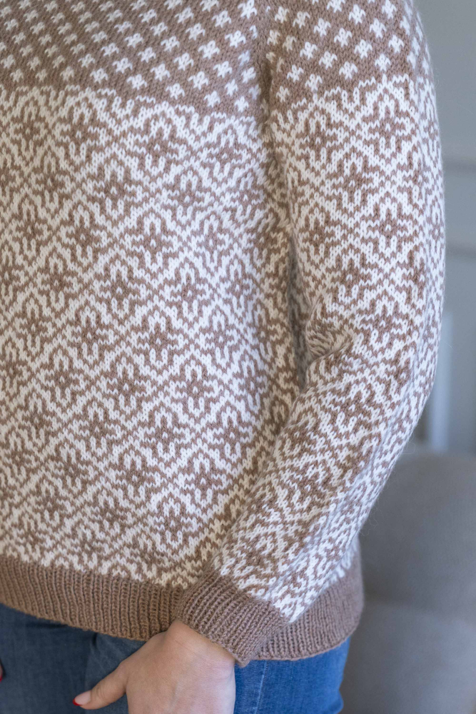 So finden Sie die passende Größe: Messen Sie ein Kleidungsstück aus, das Ihnen gut passt, und vergleichen Sie die Maße mit der Anleitung. Entscheiden Sie sich basierend auf der Brustweite des Rumpfteils für eine Größe. Die Länge des Rumpfteils sowie der Ärmel kann nach Belieben angepasst werden, aber denken Sie daran, zusätzliches Garn zu bestellen, wenn Sie die Länge verändern möchten!