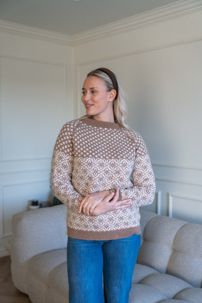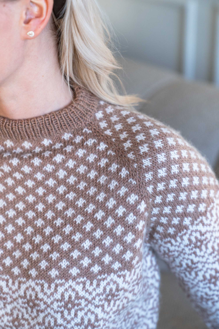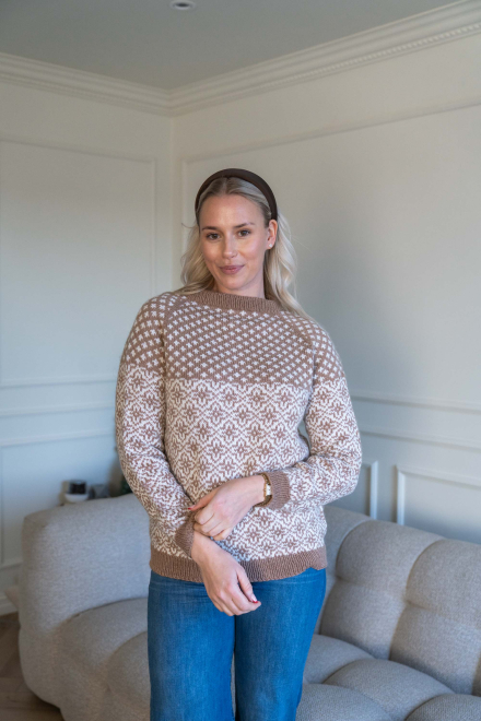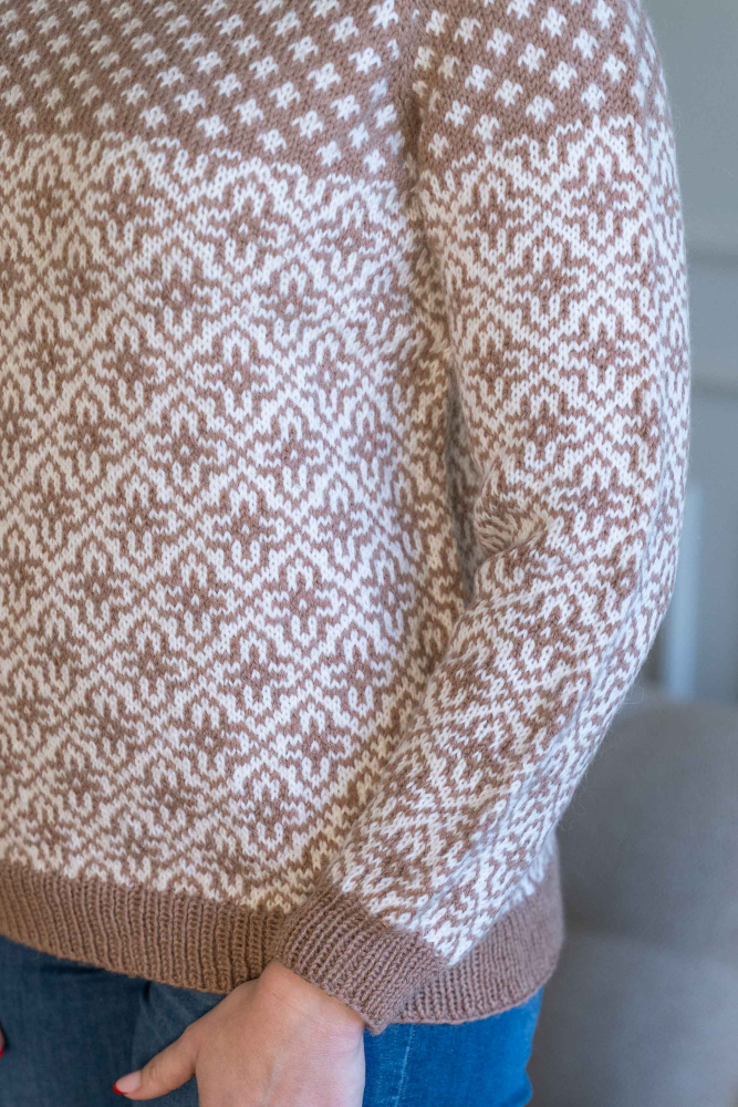 So finden Sie die passende Größe: Messen Sie ein Kleidungsstück aus, das Ihnen gut passt, und vergleichen Sie die Maße mit der Anleitung. Entscheiden Sie sich basierend auf der Brustweite des Rumpfteils für eine Größe. Die Länge des Rumpfteils sowie der Ärmel kann nach Belieben angepasst werden, aber denken Sie daran, zusätzliches Garn zu bestellen, wenn Sie die Länge verändern möchten!