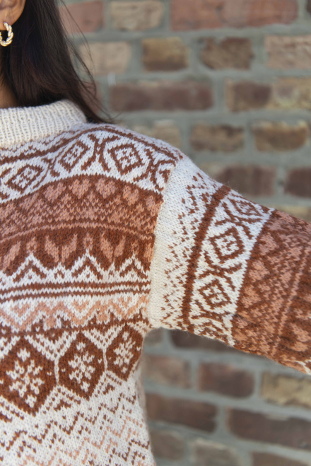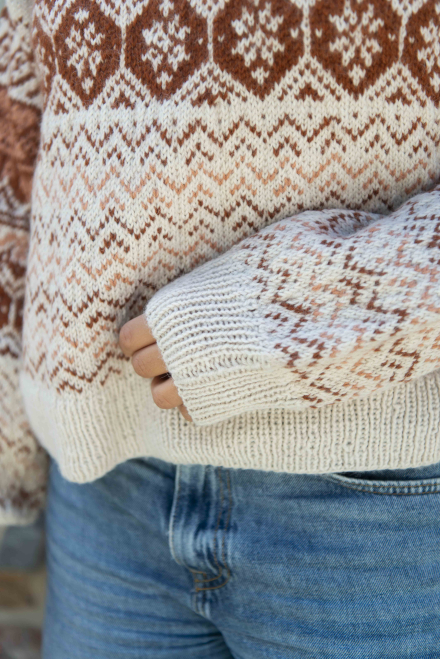 So finden Sie die passende Größe: Messen Sie ein Kleidungsstück aus, das Ihnen gut passt, und vergleichen Sie die Maße mit der Anleitung. Entscheiden Sie sich basierend auf der Brustweite des Rumpfteils für eine Größe. Die Länge des Rumpfteils sowie der Ärmel kann nach Belieben angepasst werden, aber denken Sie daran, zusätzliches Garn zu bestellen, wenn Sie die Länge verändern möchten!