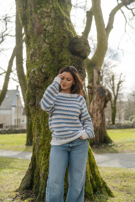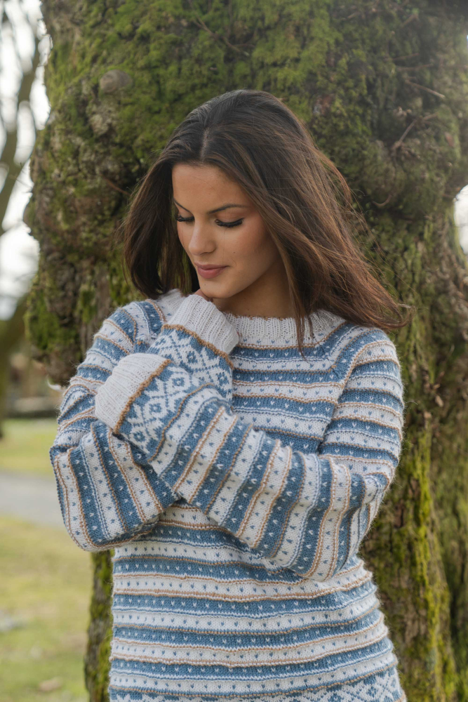 So finden Sie die passende Größe: Messen Sie ein Kleidungsstück aus, das Ihnen gut passt, und vergleichen Sie die Maße mit der Anleitung. Entscheiden Sie sich basierend auf der Brustweite des Rumpfteils für eine Größe. Die Länge des Rumpfteils sowie der Ärmel kann nach Belieben angepasst werden, aber denken Sie daran, zusätzliches Garn zu bestellen, wenn Sie die Länge verändern möchten!