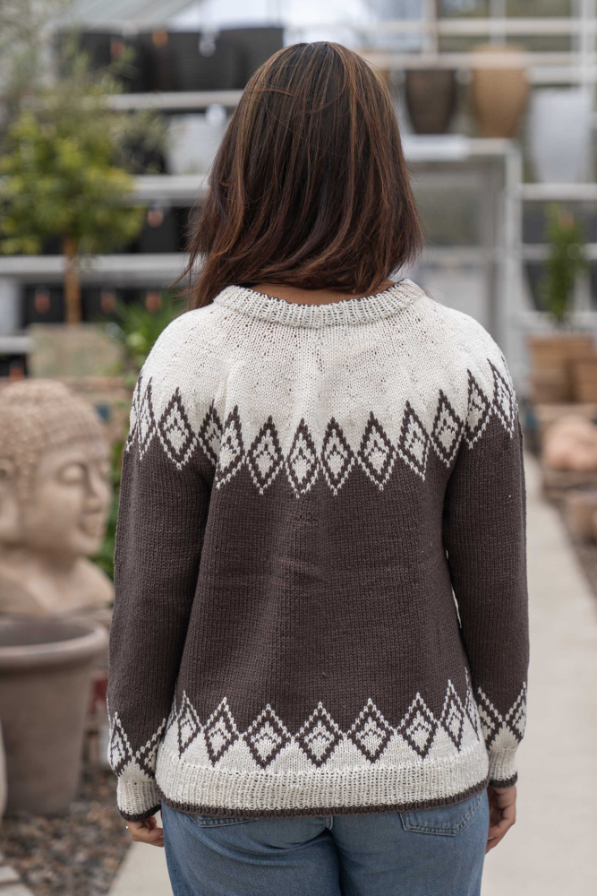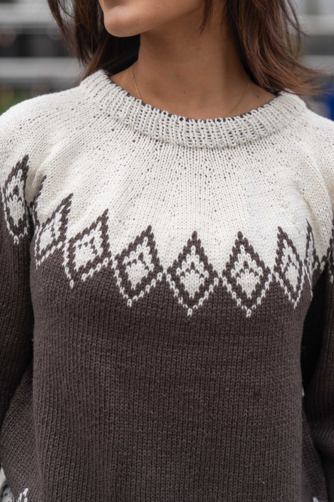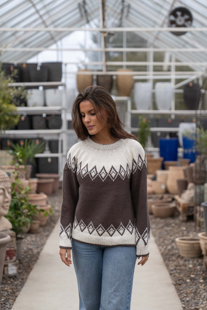 So finden Sie die passende Größe: Messen Sie ein Kleidungsstück aus, das Ihnen gut passt, und vergleichen Sie die Maße mit der Anleitung. Entscheiden Sie sich basierend auf der Brustweite des Rumpfteils für eine Größe. Die Länge des Rumpfteils sowie der Ärmel kann nach Belieben angepasst werden, aber denken Sie daran, zusätzliches Garn zu bestellen, wenn Sie die Länge verändern möchten!