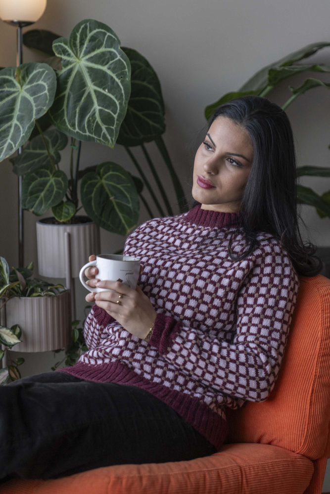 So finden Sie die passende Größe: Messen Sie ein Kleidungsstück aus, das Ihnen gut passt, und vergleichen Sie die Maße mit der Anleitung. Entscheiden Sie sich basierend auf der Brustweite des Rumpfteils für eine Größe. Die Länge des Rumpfteils sowie der Ärmel kann nach Belieben angepasst werden, aber denken Sie daran, zusätzliches Garn zu bestellen, wenn Sie die Länge verändern möchten!