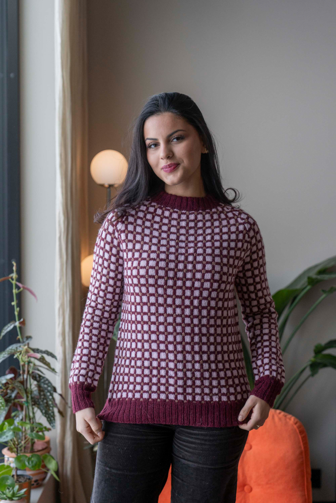 So finden Sie die passende Größe: Messen Sie ein Kleidungsstück aus, das Ihnen gut passt, und vergleichen Sie die Maße mit der Anleitung. Entscheiden Sie sich basierend auf der Brustweite des Rumpfteils für eine Größe. Die Länge des Rumpfteils sowie der Ärmel kann nach Belieben angepasst werden, aber denken Sie daran, zusätzliches Garn zu bestellen, wenn Sie die Länge verändern möchten!