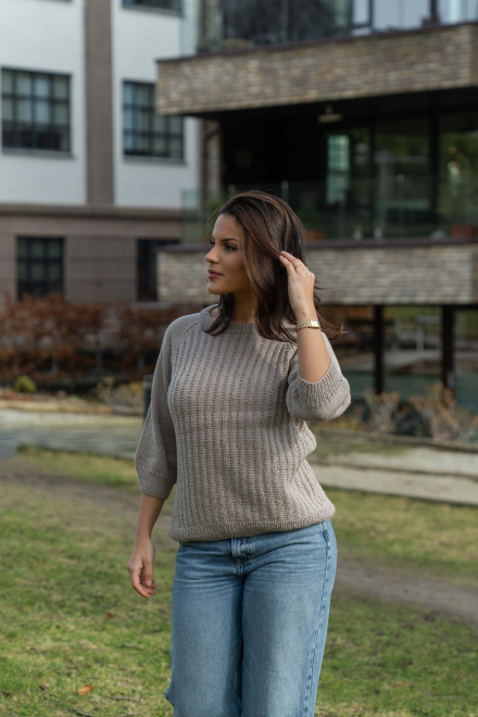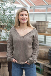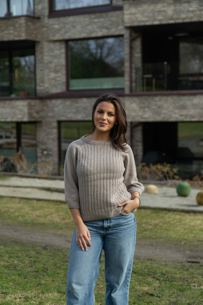 So finden Sie die passende Größe: Messen Sie ein Kleidungsstück aus, das Ihnen gut passt, und vergleichen Sie die Maße mit der Anleitung. Entscheiden Sie sich basierend auf der Brustweite des Rumpfteils für eine Größe. Die Länge des Rumpfteils sowie der Ärmel kann nach Belieben angepasst werden, aber denken Sie daran, zusätzliches Garn zu bestellen, wenn Sie die Länge verändern möchten!