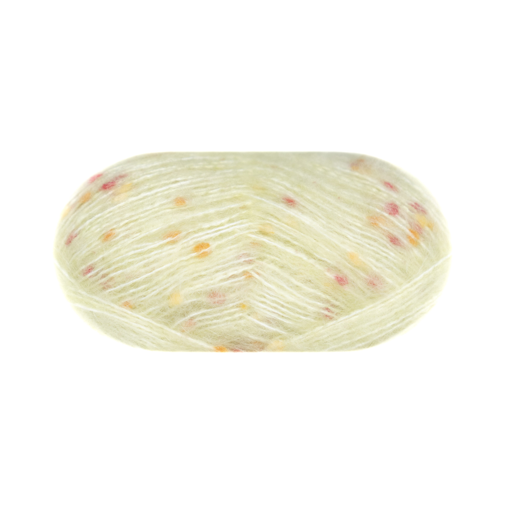 15 % Mohair, 25 % Wolle, 31 % Polyester, 9 % Nylon, 20 % Acryl, 50 g = ca. 135 Meter