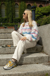 So finden Sie die passende Größe: Messen Sie ein Kleidungsstück aus, das Ihnen gut passt, und vergleichen Sie die Maße mit der Anleitung. Entscheiden Sie sich basierend auf der Brustweite des Rumpfteils für eine Größe. Die Länge des Rumpfteils sowie der Ärmel kann nach Belieben angepasst werden, aber denken Sie daran, zusätzliches Garn zu bestellen, wenn Sie die Länge verändern möchten!