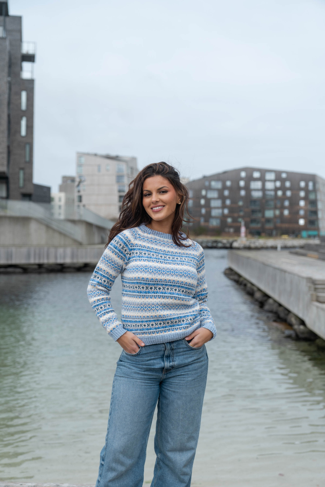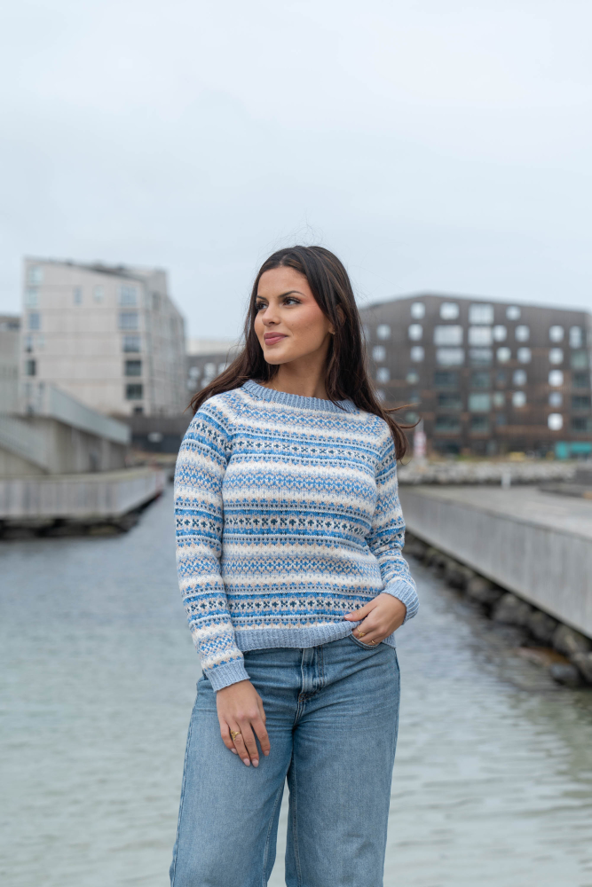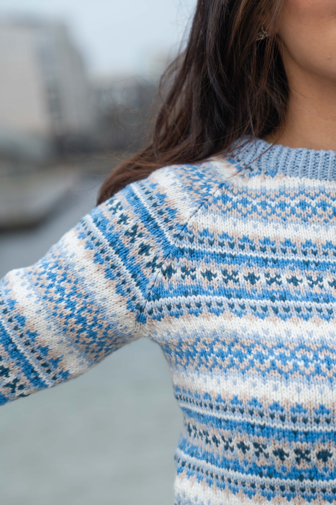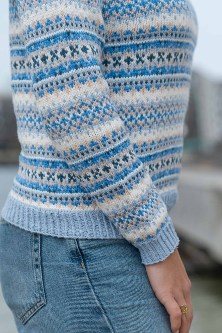 So finden Sie die passende Größe: Messen Sie ein Kleidungsstück aus, das Ihnen gut passt, und vergleichen Sie die Maße mit der Anleitung. Entscheiden Sie sich basierend auf der Brustweite des Rumpfteils für eine Größe. Die Länge des Rumpfteils sowie der Ärmel kann nach Belieben angepasst werden, aber denken Sie daran, zusätzliches Garn zu bestellen, wenn Sie die Länge verändern möchten!