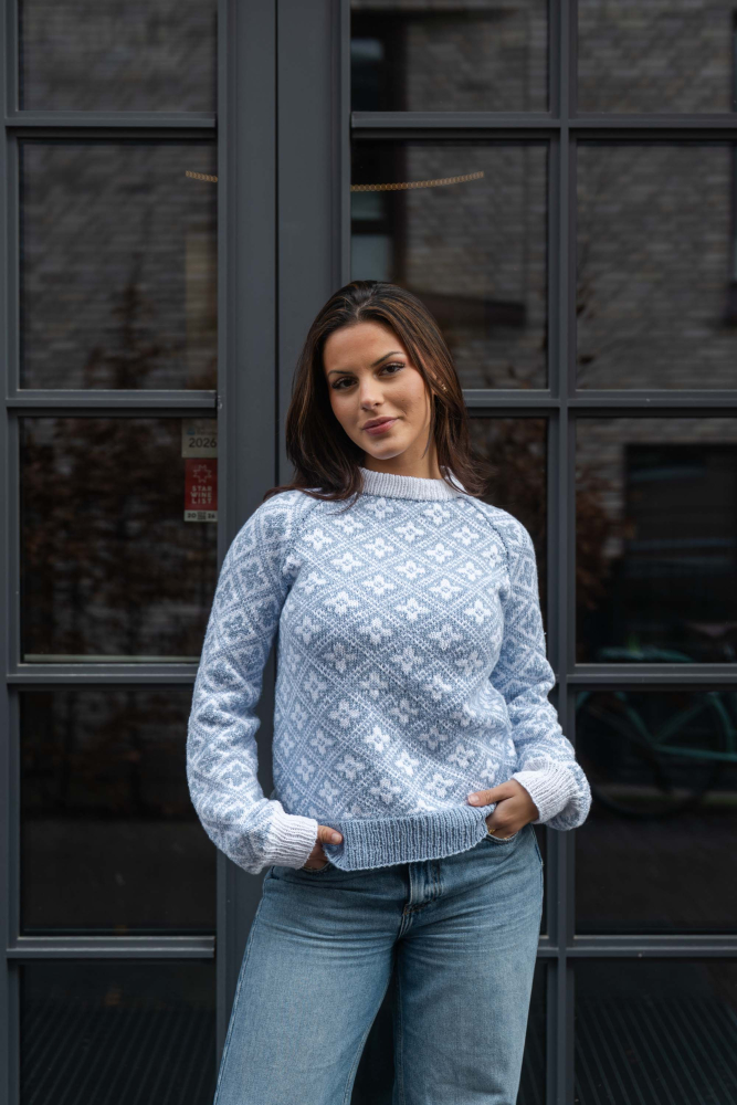 So finden Sie die passende Größe: Messen Sie ein Kleidungsstück aus, das Ihnen gut passt, und vergleichen Sie die Maße mit der Anleitung. Entscheiden Sie sich basierend auf der Brustweite des Rumpfteils für eine Größe. Die Länge des Rumpfteils sowie der Ärmel kann nach Belieben angepasst werden, aber denken Sie daran, zusätzliches Garn zu bestellen, wenn Sie die Länge verändern möchten!