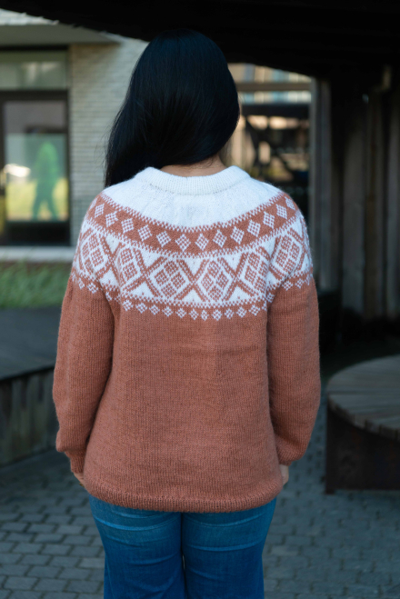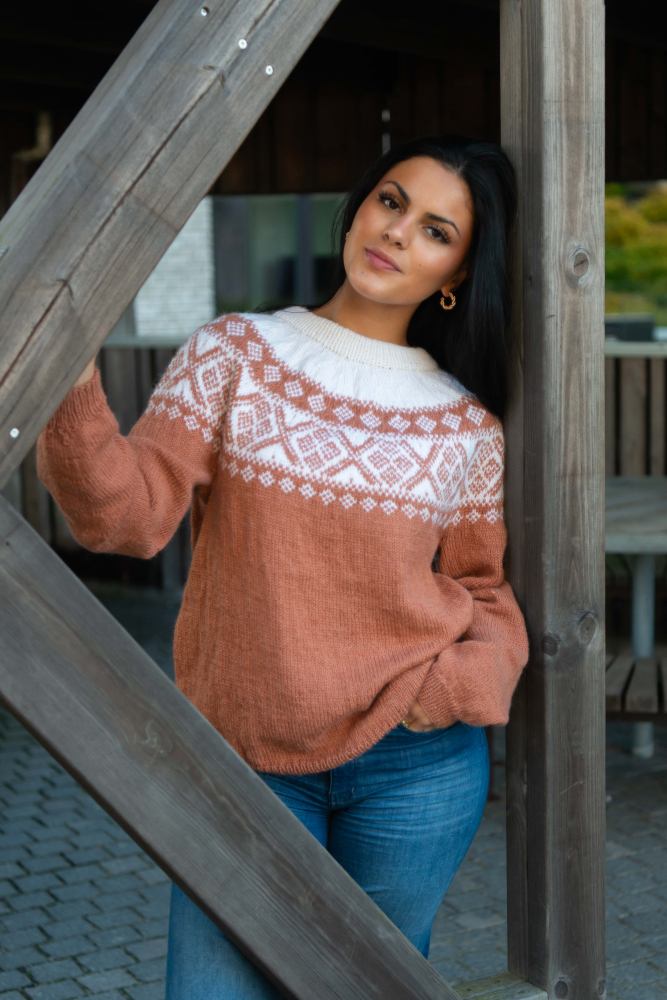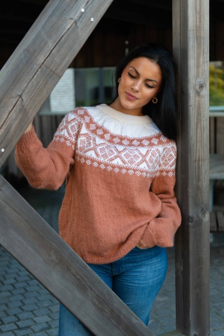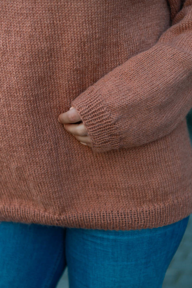 So finden Sie die passende Größe: Messen Sie ein Kleidungsstück aus, das Ihnen gut passt, und vergleichen Sie die Maße mit der Anleitung. Entscheiden Sie sich basierend auf der Brustweite des Rumpfteils für eine Größe. Die Länge des Rumpfteils sowie der Ärmel kann nach Belieben angepasst werden, aber denken Sie daran, zusätzliches Garn zu bestellen, wenn Sie die Länge verändern möchten!