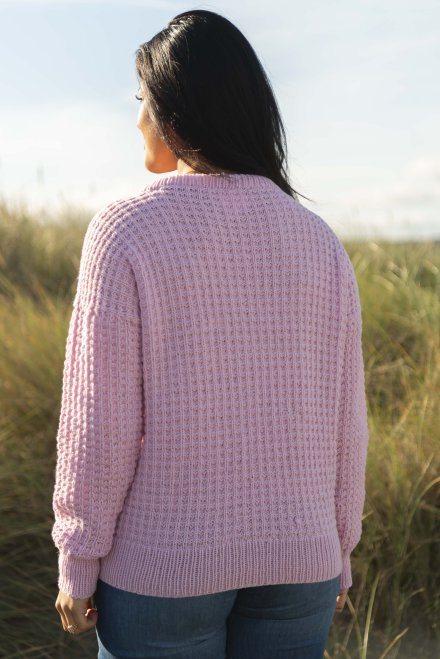 So finden Sie die passende Größe: Messen Sie ein Kleidungsstück aus, das Ihnen gut passt, und vergleichen Sie die Maße mit der Anleitung. Entscheiden Sie sich basierend auf der Brustweite des Rumpfteils für eine Größe. Die Länge des Rumpfteils sowie der Ärmel kann nach Belieben angepasst werden, aber denken Sie daran, zusätzliches Garn zu bestellen, wenn Sie die Länge verändern möchten!