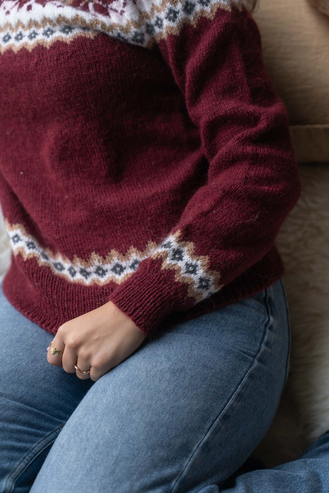 So finden Sie die passende Größe: Messen Sie ein Kleidungsstück aus, das Ihnen gut passt, und vergleichen Sie die Maße mit der Anleitung. Entscheiden Sie sich basierend auf der Brustweite des Rumpfteils für eine Größe. Die Länge des Rumpfteils sowie der Ärmel kann nach Belieben angepasst werden, aber denken Sie daran, zusätzliches Garn zu bestellen, wenn Sie die Länge verändern möchten!