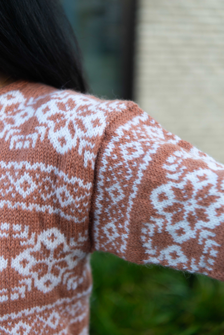So finden Sie die passende Größe: Messen Sie ein Kleidungsstück aus, das Ihnen gut passt, und vergleichen Sie die Maße mit der Anleitung. Entscheiden Sie sich basierend auf der Brustweite des Rumpfteils für eine Größe. Die Länge des Rumpfteils sowie der Ärmel kann nach Belieben angepasst werden, aber denken Sie daran, zusätzliches Garn zu bestellen, wenn Sie die Länge verändern möchten!