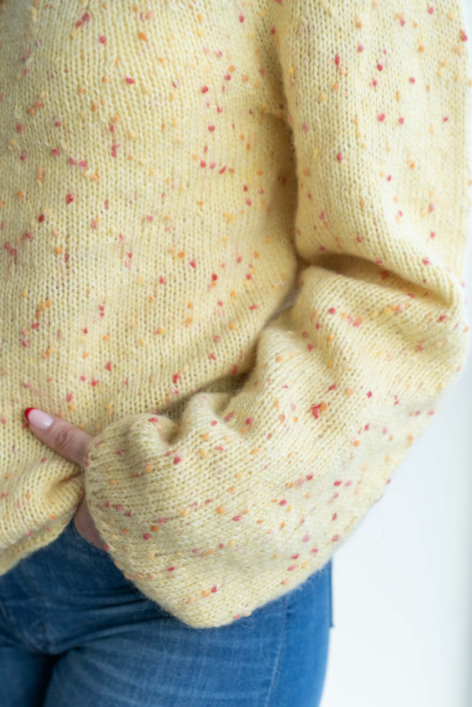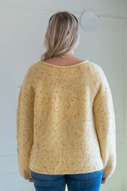 So finden Sie die passende Größe: Messen Sie ein Kleidungsstück aus, das Ihnen gut passt, und vergleichen Sie die Maße mit der Anleitung. Entscheiden Sie sich basierend auf der Brustweite des Rumpfteils für eine Größe. Die Länge des Rumpfteils sowie der Ärmel kann nach Belieben angepasst werden, aber denken Sie daran, zusätzliches Garn zu bestellen, wenn Sie die Länge verändern möchten!