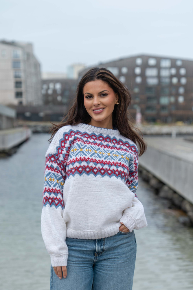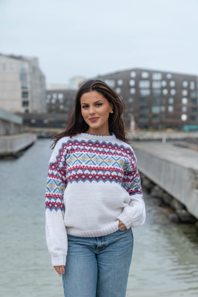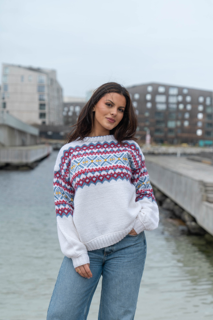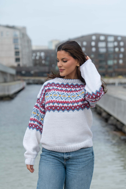 So finden Sie die passende Größe: Messen Sie ein Kleidungsstück aus, das Ihnen gut passt, und vergleichen Sie die Maße mit der Anleitung. Entscheiden Sie sich basierend auf der Brustweite des Rumpfteils für eine Größe. Die Länge des Rumpfteils sowie der Ärmel kann nach Belieben angepasst werden, aber denken Sie daran, zusätzliches Garn zu bestellen, wenn Sie die Länge verändern möchten!