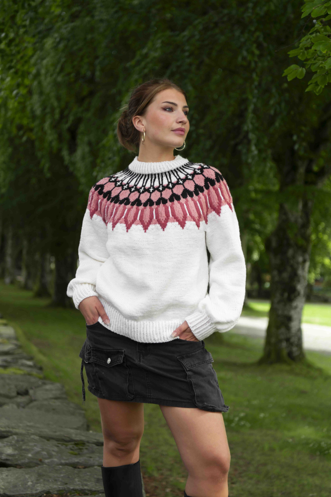 So finden Sie die passende Größe: Messen Sie ein Kleidungsstück aus, das Ihnen gut passt, und vergleichen Sie die Maße mit der Anleitung. Entscheiden Sie sich basierend auf der Brustweite des Vorderteils für eine Größe. Die Länge des Vorderteils sowie der Ärmel kann nach Belieben angepasst werden, aber denken Sie daran, zusätzliches Garn zu bestellen, wenn Sie die Länge verändern möchten!