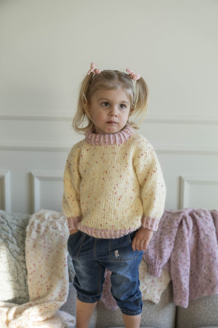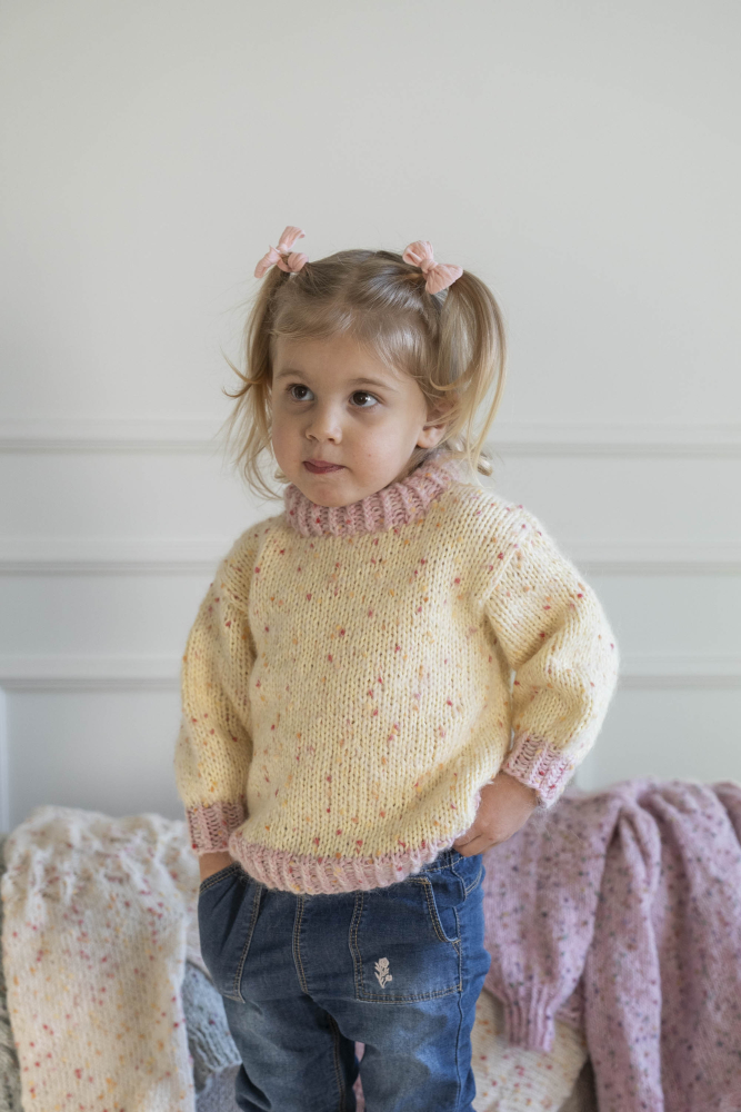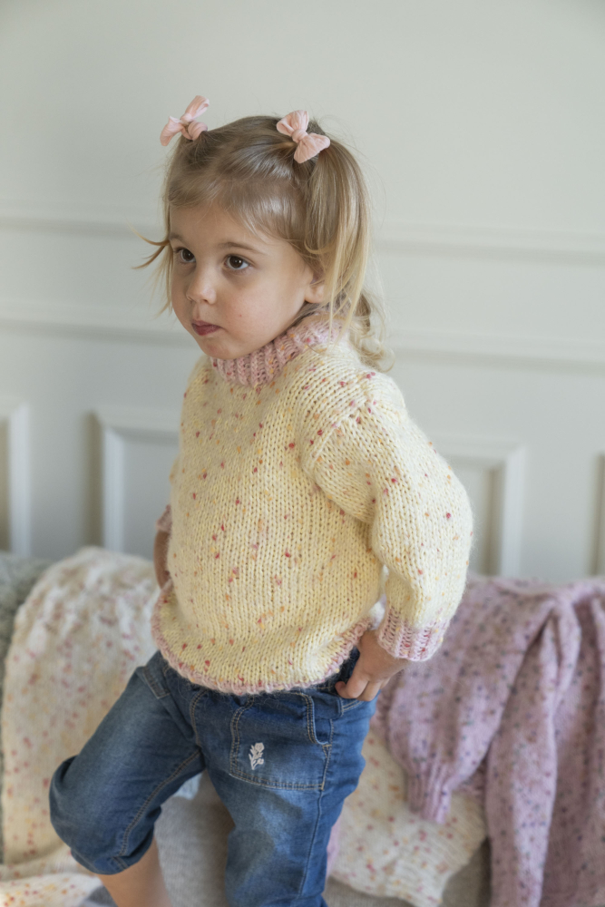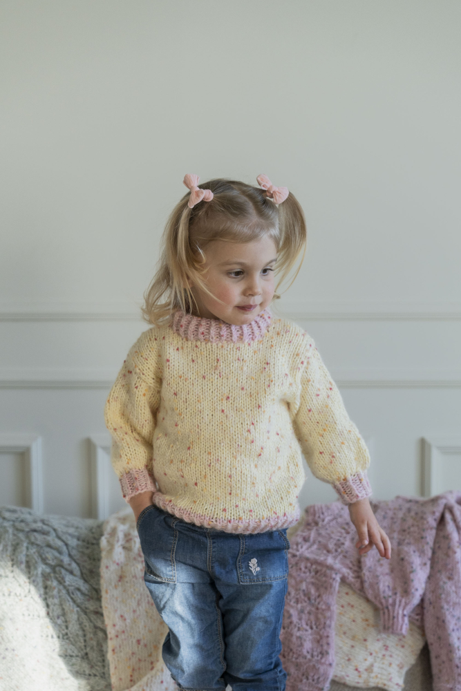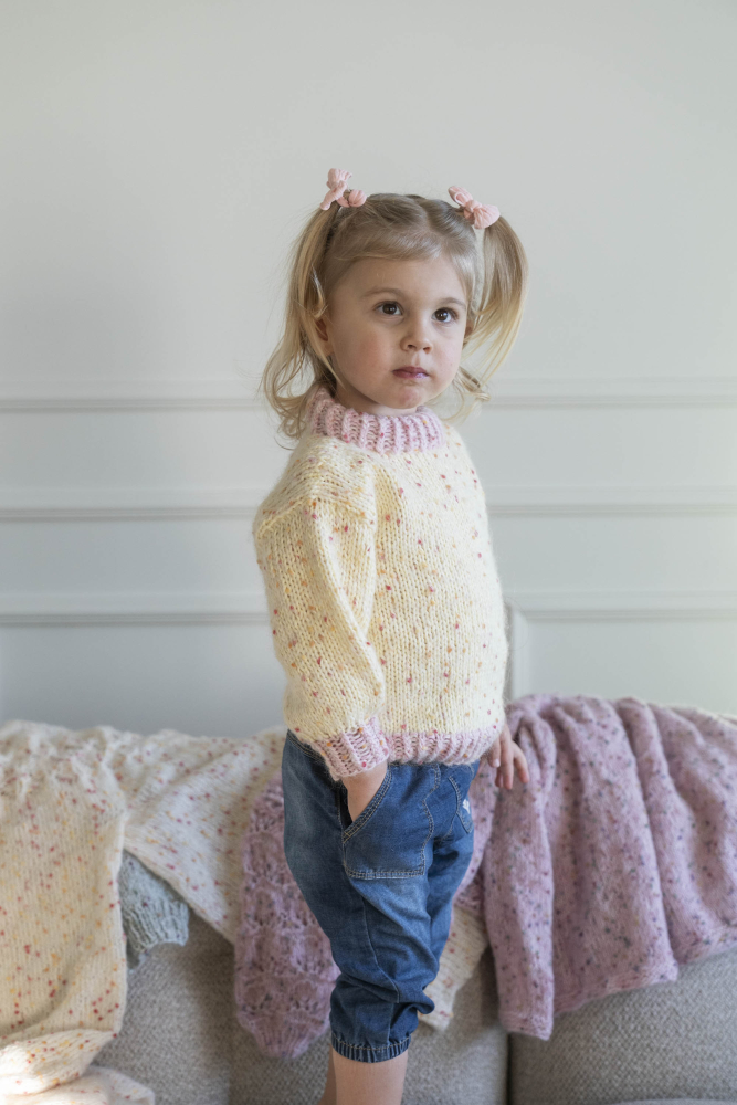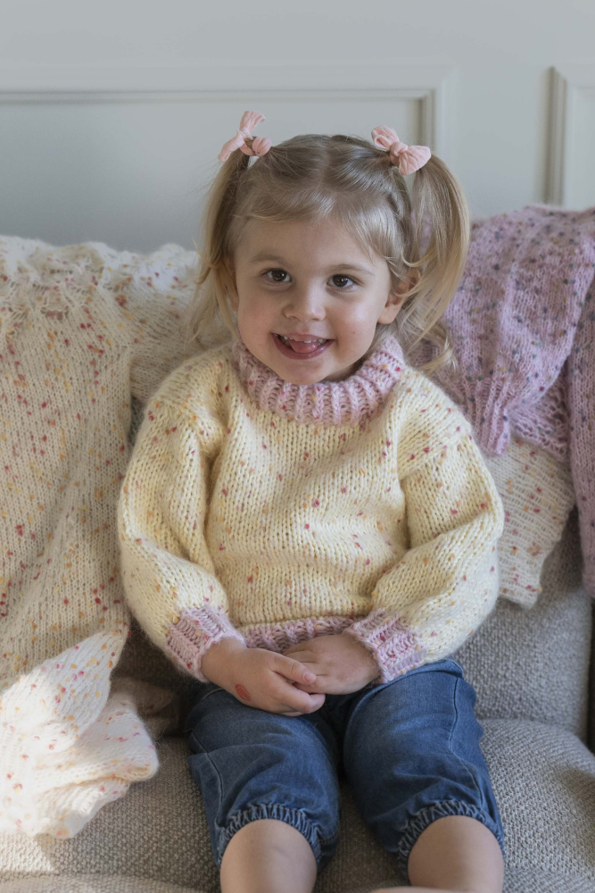 So finden Sie die passende Größe: Messen Sie ein Kleidungsstück aus, das Ihnen gut passt, und vergleichen Sie die Maße mit der Anleitung. Entscheiden Sie sich basierend auf der Brustweite des Rumpfteils für eine Größe. Die Länge des Rumpfteils sowie der Ärmel kann nach Belieben angepasst werden, aber denken Sie daran, zusätzliches Garn zu bestellen, wenn Sie die Länge verändern möchten!