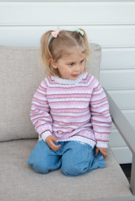 So finden Sie die passende Größe: Messen Sie ein Kleidungsstück aus, das Ihnen gut passt, und vergleichen Sie die Maße mit der Anleitung. Entscheiden Sie sich basierend auf der Brustweite des Rumpfteils für eine Größe. Die Länge des Rumpfteils sowie der Ärmel kann nach Belieben angepasst werden, aber denken Sie daran, zusätzliches Garn zu bestellen, wenn Sie die Länge verändern möchten!