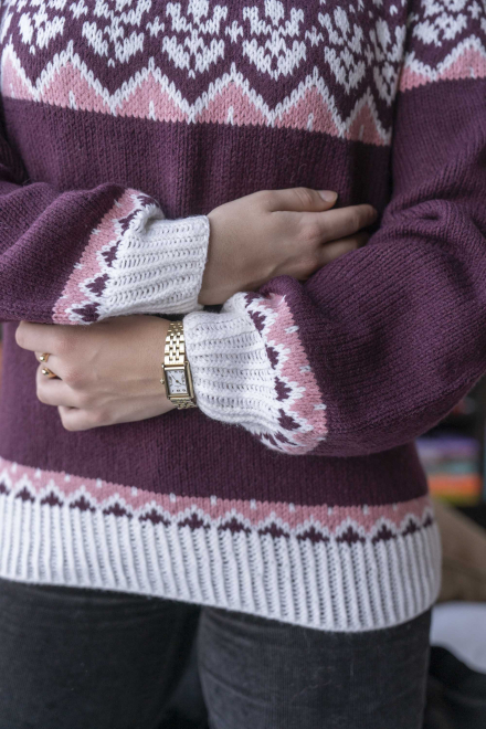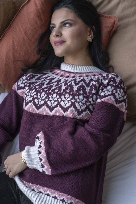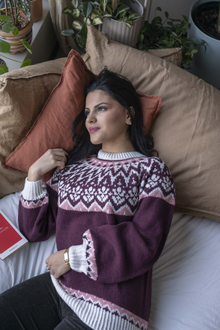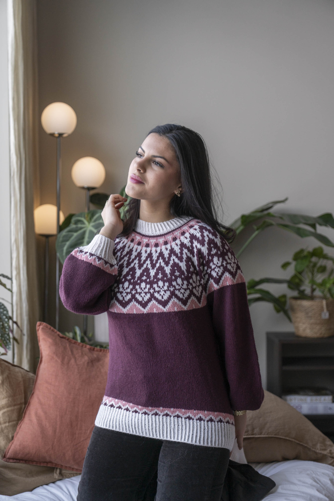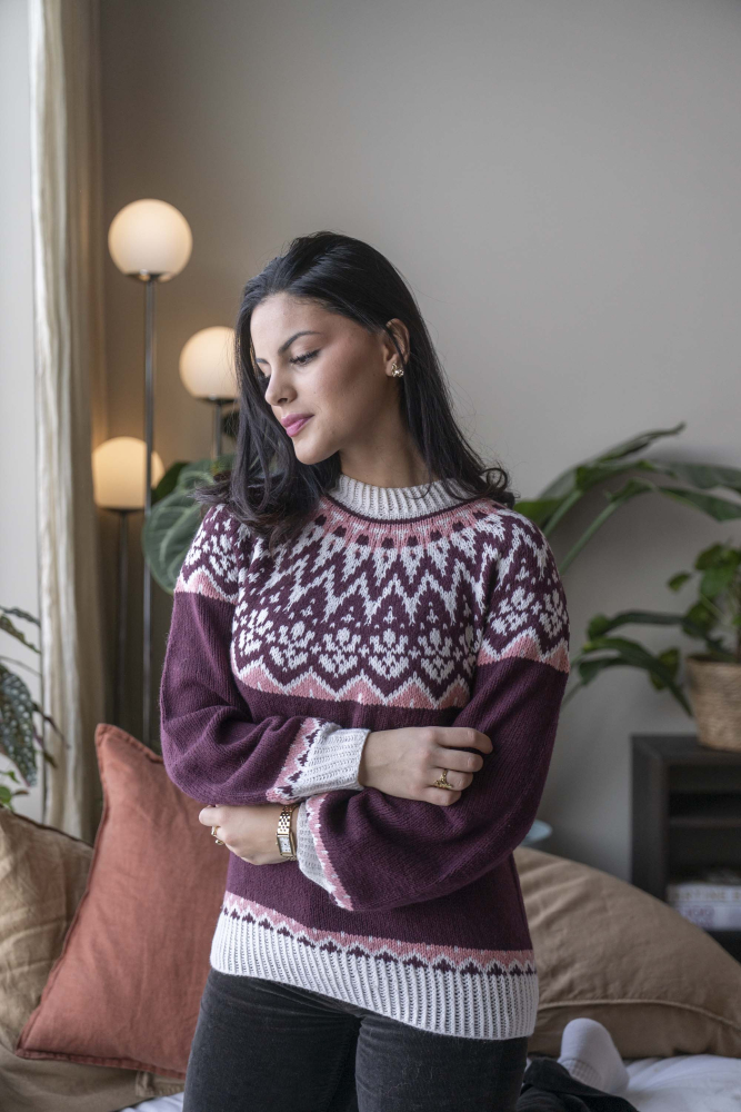 So finden Sie die passende Größe: Messen Sie ein Kleidungsstück aus, das Ihnen gut passt, und vergleichen Sie die Maße mit der Anleitung. Entscheiden Sie sich basierend auf der Brustweite des Rumpfteils für eine Größe. Die Länge des Rumpfteils sowie der Ärmel kann nach Belieben angepasst werden, aber denken Sie daran, zusätzliches Garn zu bestellen, wenn Sie die Länge verändern möchten!