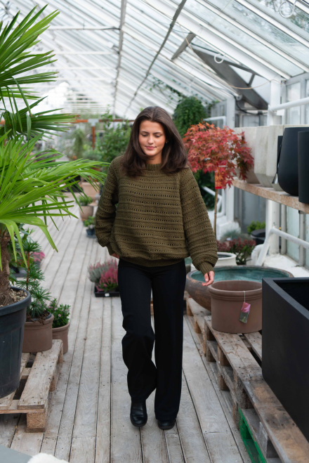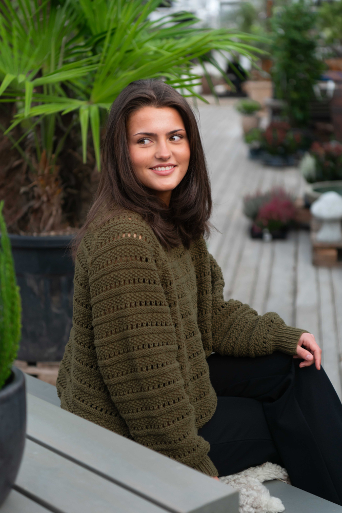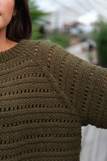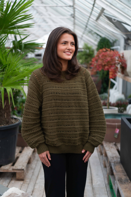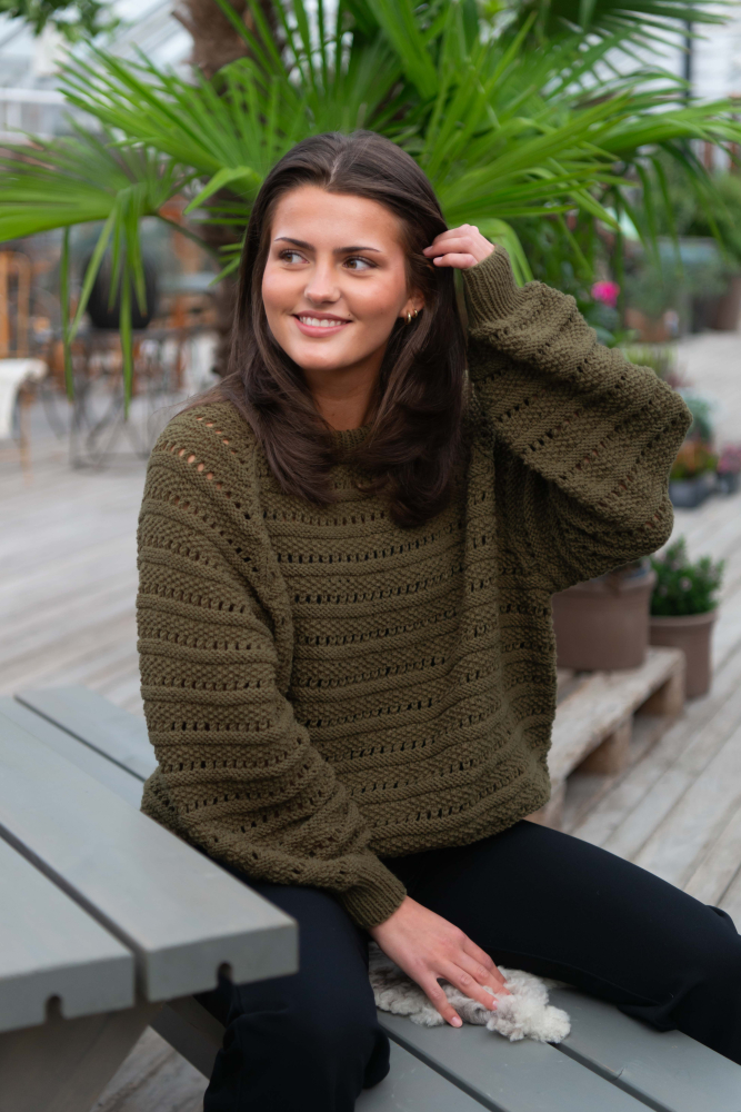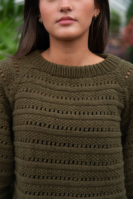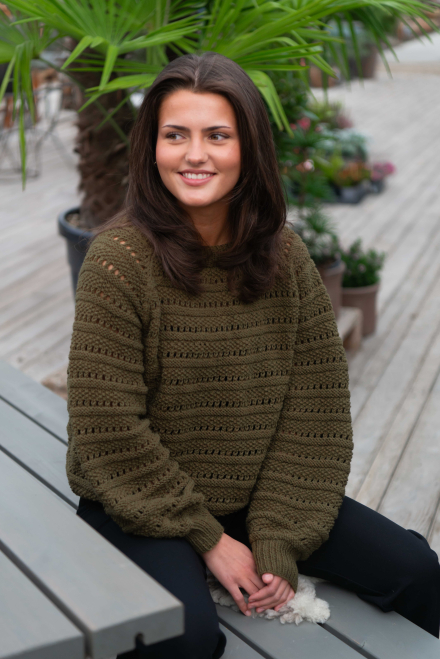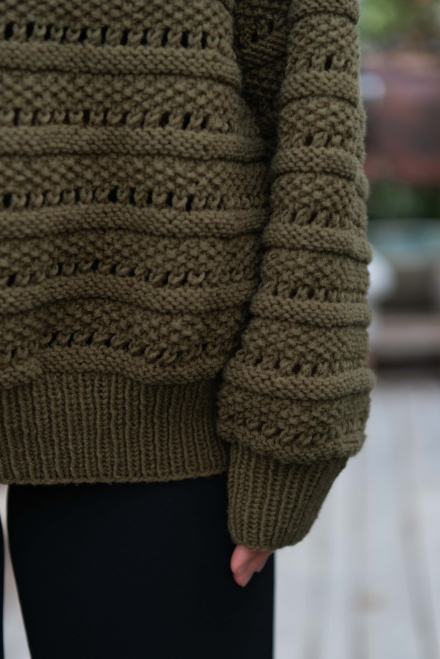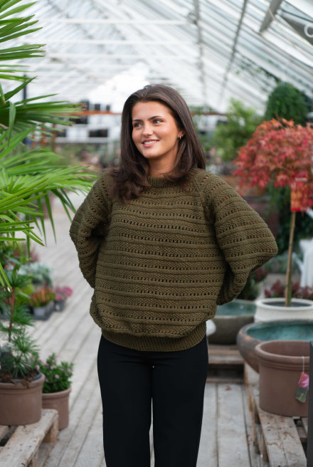 So finden Sie die passende Größe: Messen Sie ein Kleidungsstück aus, das Ihnen gut passt, und vergleichen Sie die Maße mit der Anleitung. Entscheiden Sie sich basierend auf der Brustweite des Rumpfteils für eine Größe. Die Länge des Rumpfteils sowie der Ärmel kann nach Belieben angepasst werden, aber denken Sie daran, zusätzliches Garn zu bestellen, wenn Sie die Länge verändern möchten!