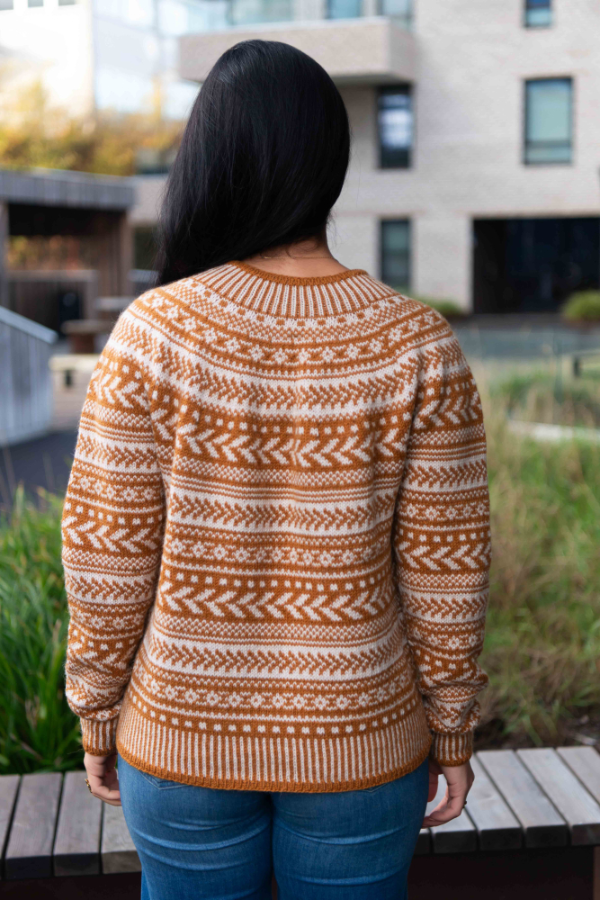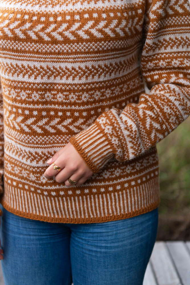 So finden Sie die passende Größe: Messen Sie ein Kleidungsstück aus, das Ihnen gut passt, und vergleichen Sie die Maße mit der Anleitung. Entscheiden Sie sich basierend auf der Brustweite des Rumpfteils für eine Größe. Die Länge des Rumpfteils sowie der Ärmel kann nach Belieben angepasst werden, aber denken Sie daran, zusätzliches Garn zu bestellen, wenn Sie die Länge verändern möchten!