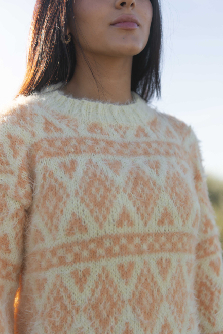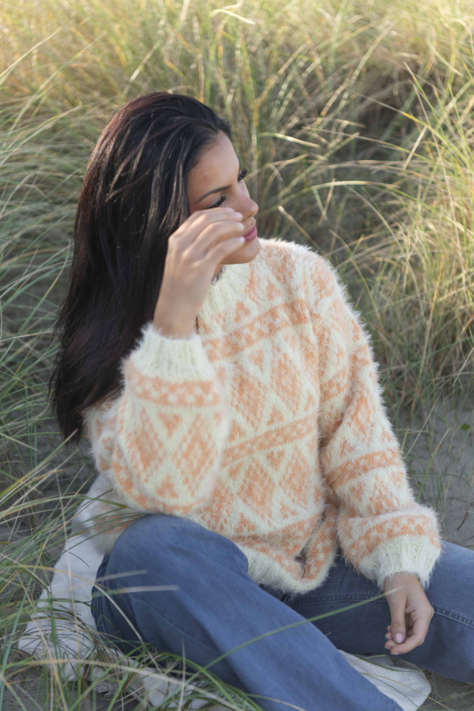 So finden Sie die passende Größe: Messen Sie ein Kleidungsstück aus, das Ihnen gut passt, und vergleichen Sie die Maße mit der Anleitung. Entscheiden Sie sich basierend auf der Brustweite des Rumpfteils für eine Größe. Die Länge des Rumpfteils sowie der Ärmel kann nach Belieben angepasst werden, aber denken Sie daran, zusätzliches Garn zu bestellen, wenn Sie die Länge verändern möchten!