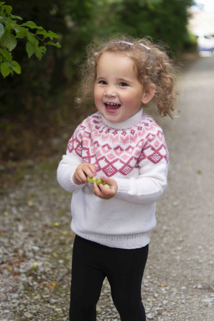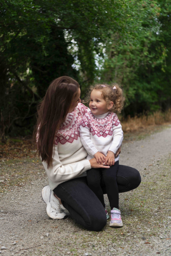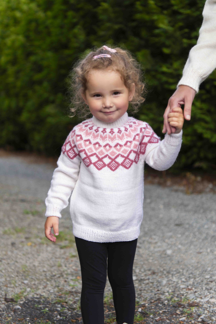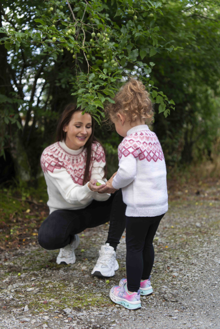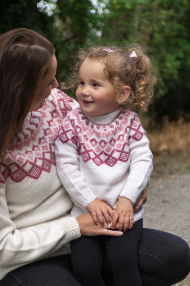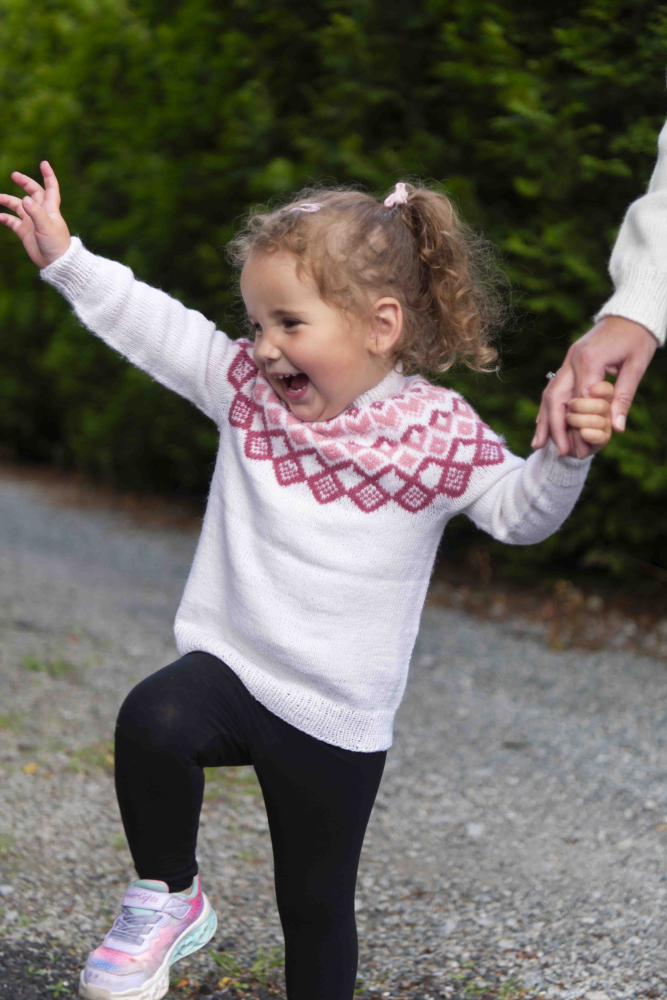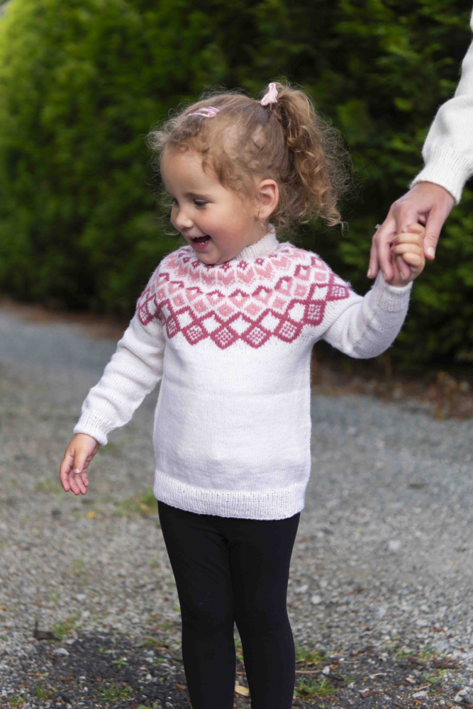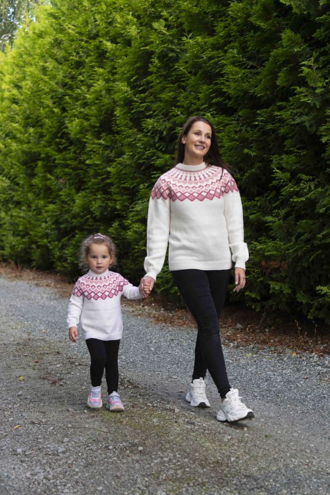 Mena ist ein wunderschöner Runenstrickpullover mit einem geometrischen Muster auf der Passe. Dies ist sowohl für Frauen als auch für Männer und Kinder geeignet, sodass die ganze Familie hier mithalten kann!