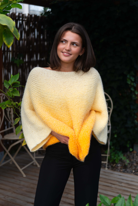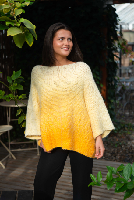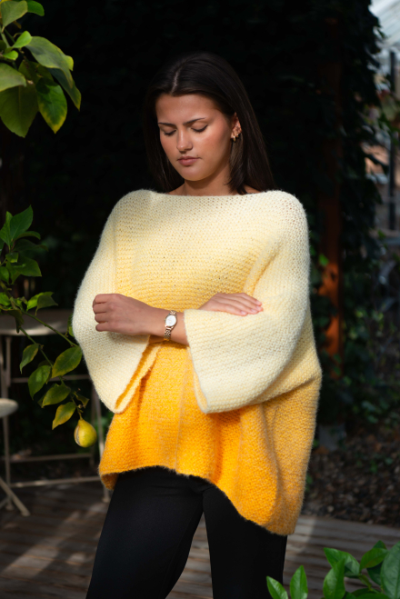 So finden Sie die passende Größe: Messen Sie ein Kleidungsstück aus, das Ihnen gut passt, und vergleichen Sie die Maße mit der Anleitung. Entscheiden Sie sich basierend auf der Brustweite des Rumpfteils für eine Größe. Die Länge des Rumpfteils sowie der Ärmel kann nach Belieben angepasst werden, aber denken Sie daran, zusätzliches Garn zu bestellen, wenn Sie die Länge verändern möchten!