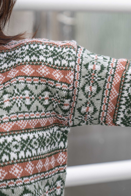 So finden Sie die passende Größe: Messen Sie ein Kleidungsstück aus, das Ihnen gut passt, und vergleichen Sie die Maße mit der Anleitung. Entscheiden Sie sich basierend auf der Brustweite des Rumpfteils für eine Größe. Die Länge des Rumpfteils sowie der Ärmel kann nach Belieben angepasst werden, aber denken Sie daran, zusätzliches Garn zu bestellen, wenn Sie die Länge verändern möchten!