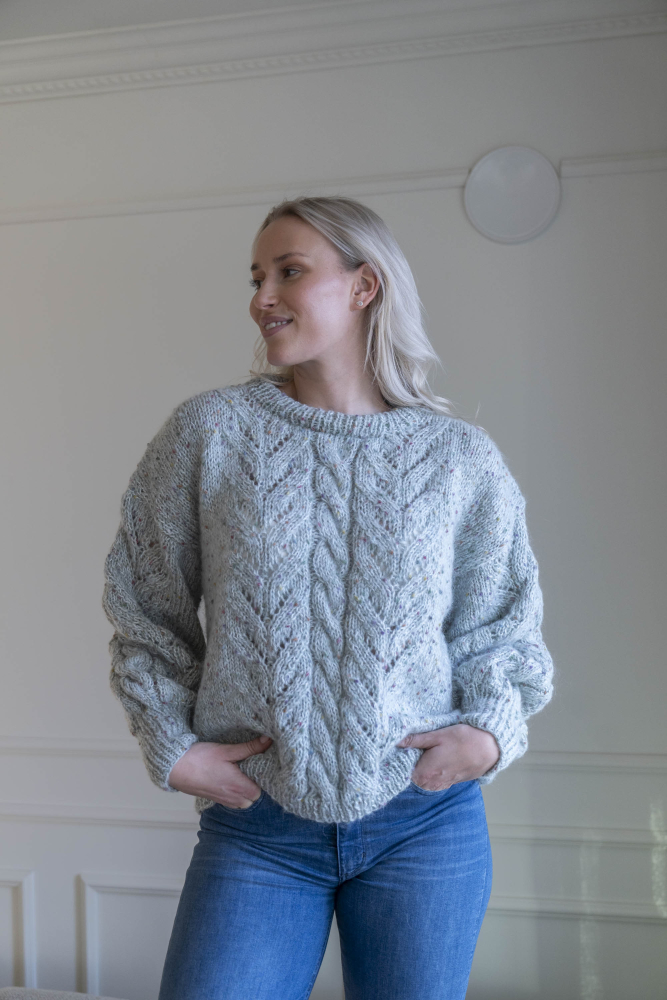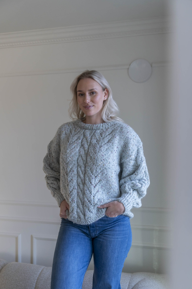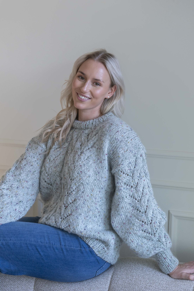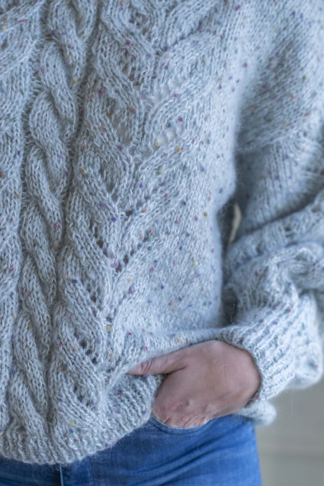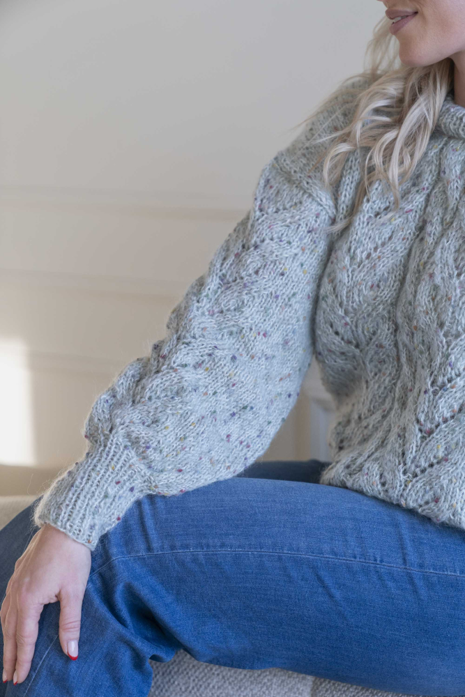 So finden Sie die passende Größe: Messen Sie ein Kleidungsstück aus, das Ihnen gut passt, und vergleichen Sie die Maße mit der Anleitung. Entscheiden Sie sich basierend auf der Brustweite des Rumpfteils für eine Größe. Die Länge des Rumpfteils sowie der Ärmel kann nach Belieben angepasst werden, aber denken Sie daran, zusätzliches Garn zu bestellen, wenn Sie die Länge verändern möchten!
