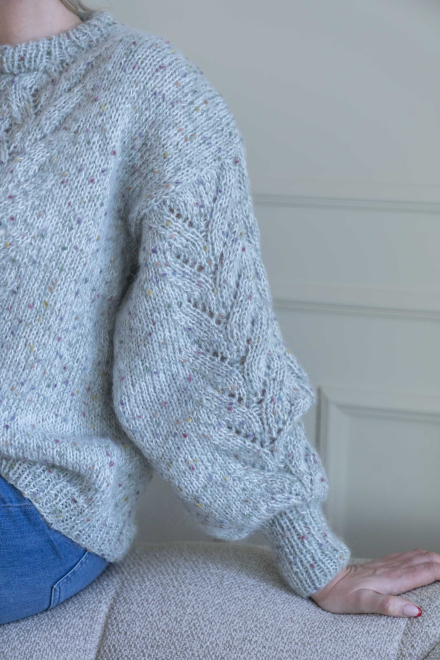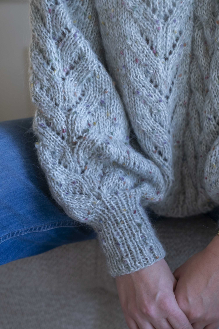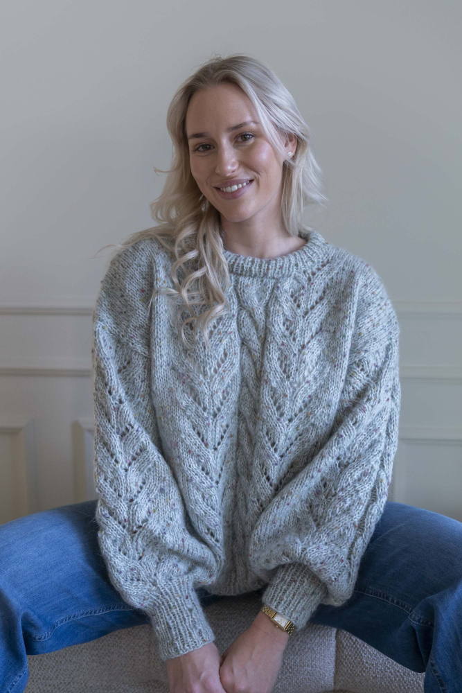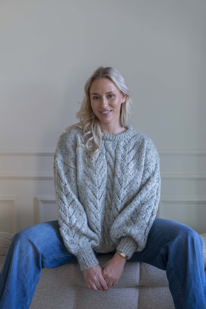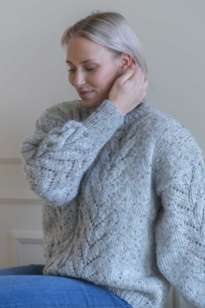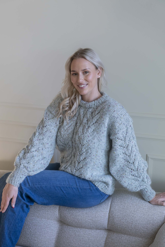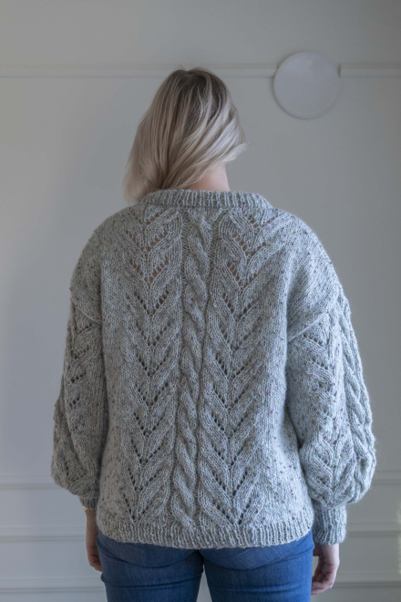 So finden Sie die passende Größe: Messen Sie ein Kleidungsstück aus, das Ihnen gut passt, und vergleichen Sie die Maße mit der Anleitung. Entscheiden Sie sich basierend auf der Brustweite des Rumpfteils für eine Größe. Die Länge des Rumpfteils sowie der Ärmel kann nach Belieben angepasst werden, aber denken Sie daran, zusätzliches Garn zu bestellen, wenn Sie die Länge verändern möchten!