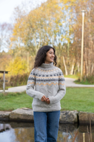 So finden Sie die passende Größe: Messen Sie ein Kleidungsstück aus, das Ihnen gut passt, und vergleichen Sie die Maße mit der Anleitung. Entscheiden Sie sich basierend auf der Brustweite des Rumpfteils für eine Größe. Die Länge des Rumpfteils sowie der Ärmel kann nach Belieben angepasst werden, aber denken Sie daran, zusätzliches Garn zu bestellen, wenn Sie die Länge verändern möchten!