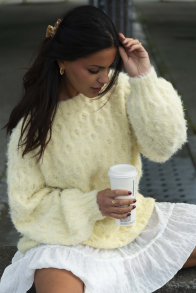 So finden Sie die passende Größe: Messen Sie ein Kleidungsstück aus, das Ihnen gut passt, und vergleichen Sie die Maße mit der Anleitung. Entscheiden Sie sich basierend auf der Brustweite des Rumpfteils für eine Größe. Die Länge des Rumpfteils sowie der Ärmel kann nach Belieben angepasst werden, aber denken Sie daran, zusätzliches Garn zu bestellen, wenn Sie die Länge verändern möchten!