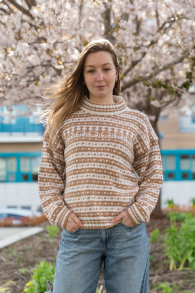 So finden Sie die passende Größe: Messen Sie ein Kleidungsstück aus, das Ihnen gut passt, und vergleichen Sie die Maße mit der Anleitung. Entscheiden Sie sich basierend auf der Brustweite des Rumpfteils für eine Größe. Die Länge des Rumpfteils sowie der Ärmel kann nach Belieben angepasst werden, aber denken Sie daran, zusätzliches Garn zu bestellen, wenn Sie die Länge verändern möchten!